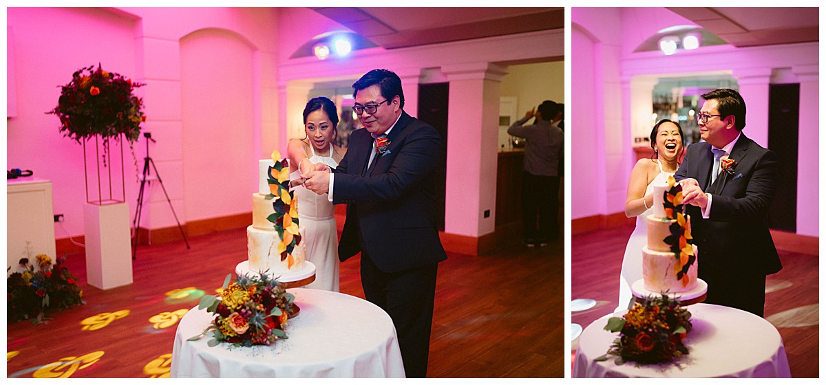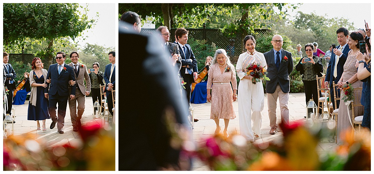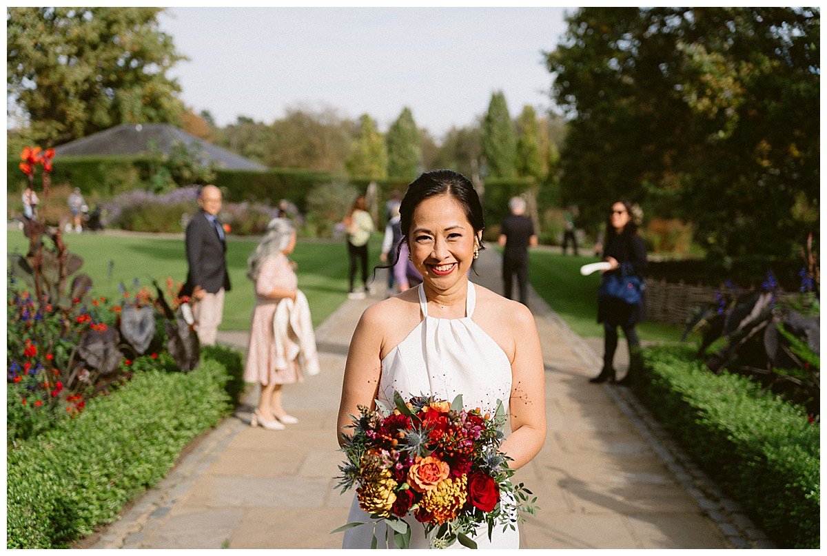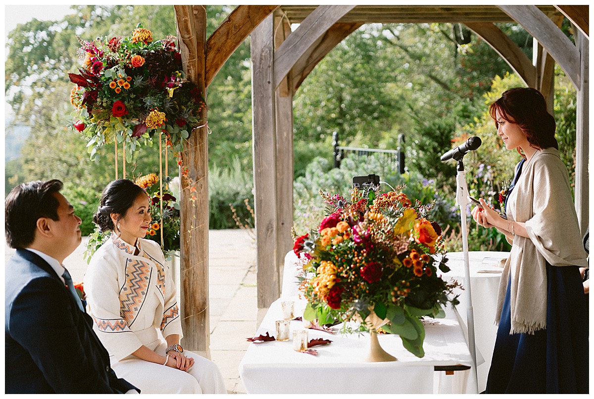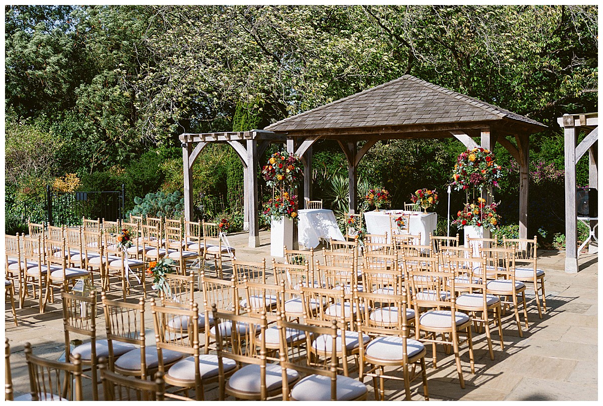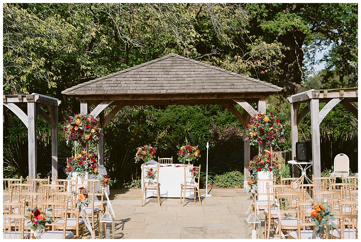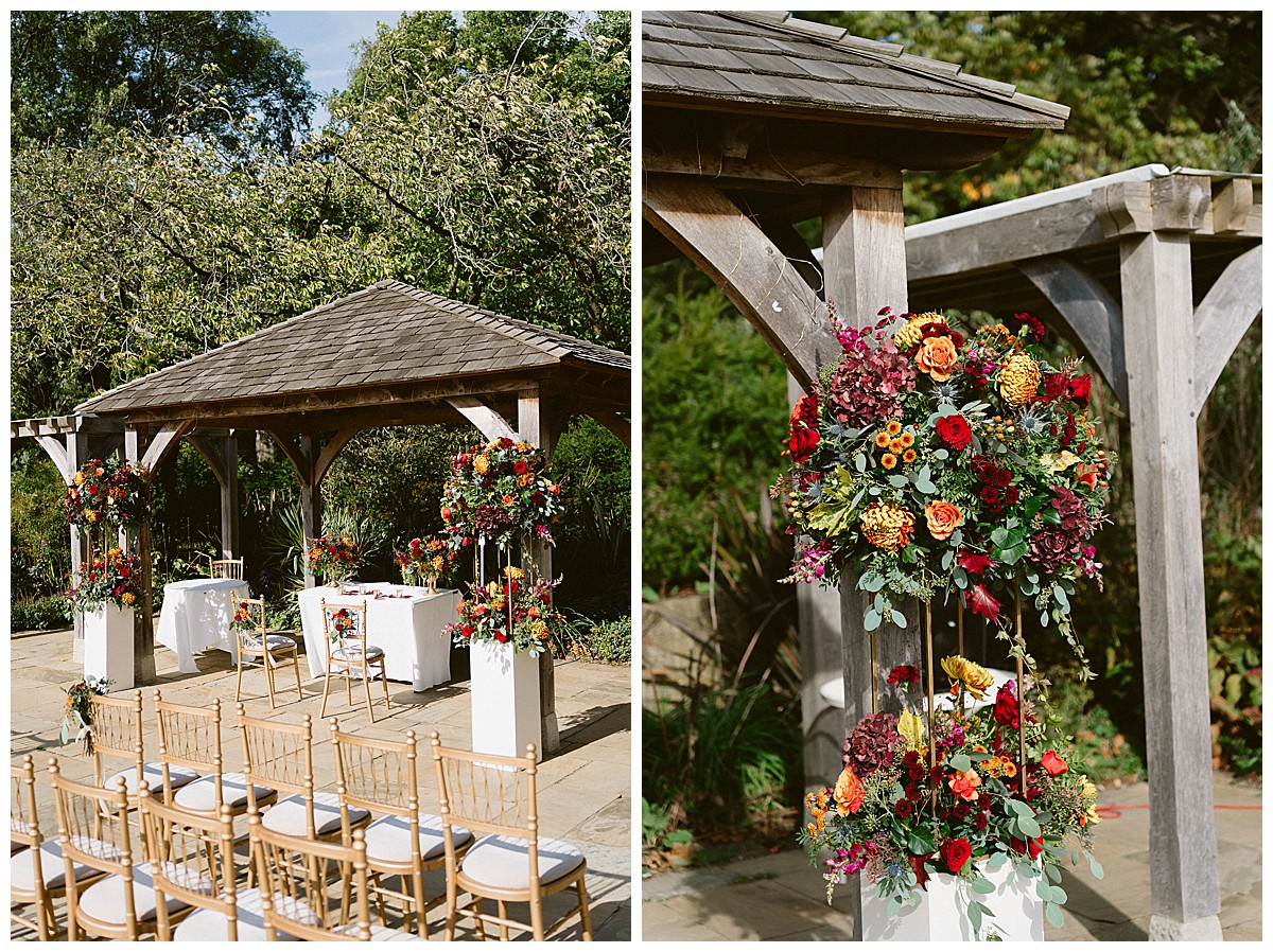 With family in the UK and The Philippines, Bernadette, or Bernie as she much preferred, & Carlos chose an autumn wedding at Pembroke Lodge to get all their nearest and dearest together. We planned the wedding remotely with the help of Pinterest, sharing stationery designs, and emails to develop the colour blend and style. B&C were an absolute dream of a couple to work with, and they were really enchanted by the idea of an autumn wedding, echoing the turning of the leaves, nature’s vibrant hues, and the rich palette of colours that the season naturally offers. As we got closer to the wedding day, we realised that this might turn out to be an unusually warm early October and we quickly adapted our plans to work equally well outside, should the sun shine brightly that day. And OMG, it did, it was literally like a summer’s day, much to everyone’s delight.
