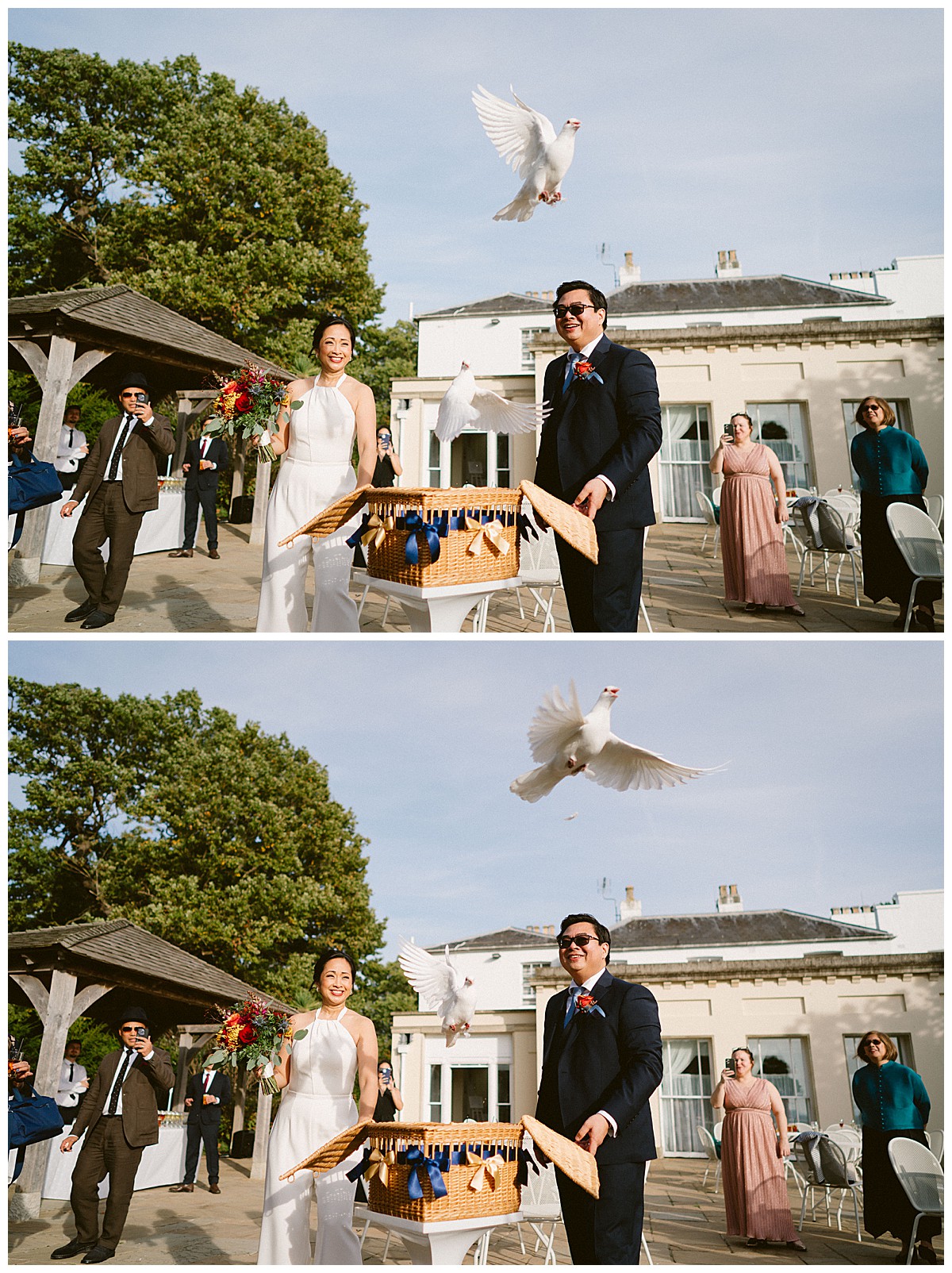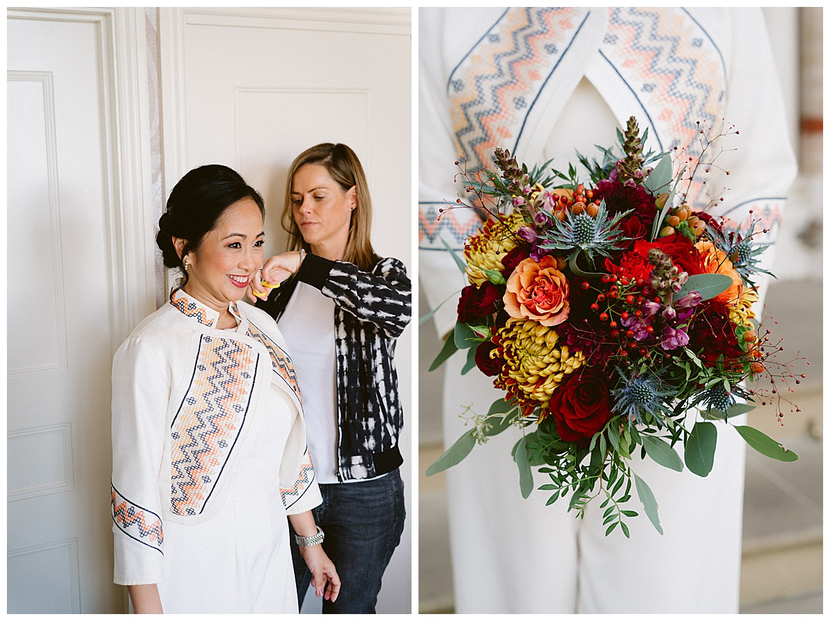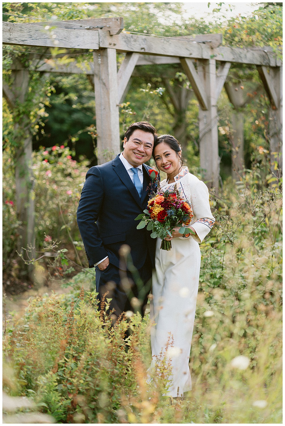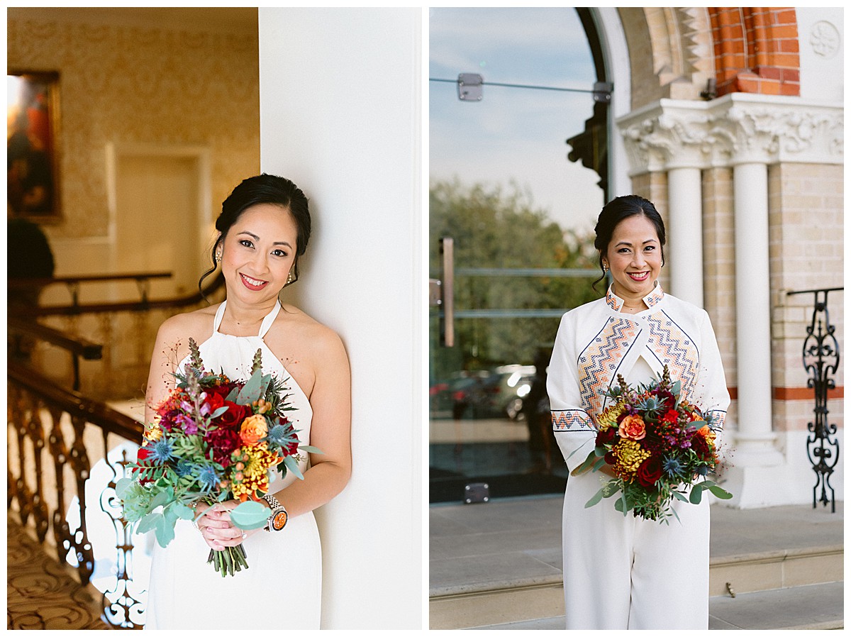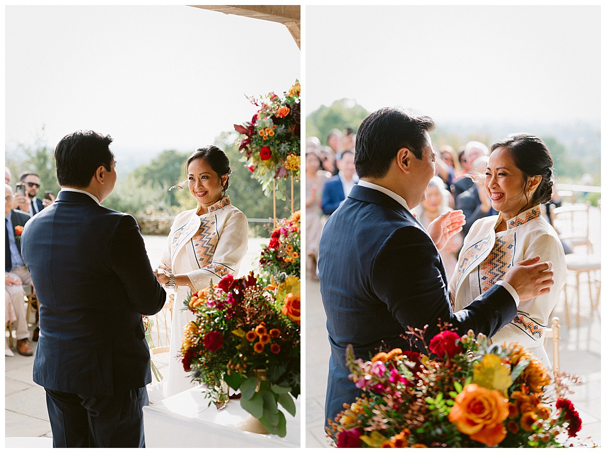 With family in the UK and The Philippines, Bernadette, or Bernie as she much preferred, & Carlos chose an autumn wedding at Pembroke Lodge to get all their nearest and dearest together. We planned the wedding remotely with the help of Pinterest, sharing stationery designs, and emails to develop the colour blend and style. B&C were an absolute dream of a couple to work with, and they were really enchanted by the idea of an autumn wedding, echoing the turning of the leaves, nature’s vibrant hues, and the rich palette of colours that the season naturally offers. As we got closer to the wedding day, we realised that this might turn out to be an unusually warm early October and we quickly adapted our plans to work equally well outside, should the sun shine brightly that day. And OMG, it did, it was literally like a summer’s day, much to everyone’s delight.