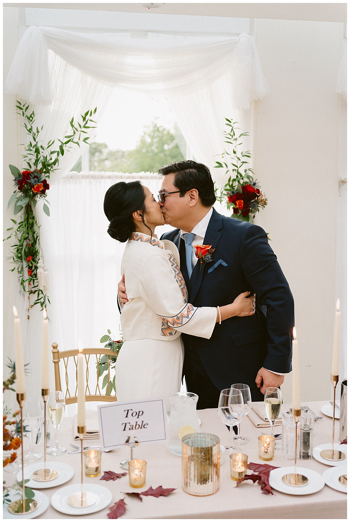 The beautiful photography in this post is thanks to amazing David at Married To My Camera, whose photography I absolutely adore! The other suppliers to note are the lovely Host With Style who provided the elegant gold chairs and the window drapery ready for us to dress with flowers.