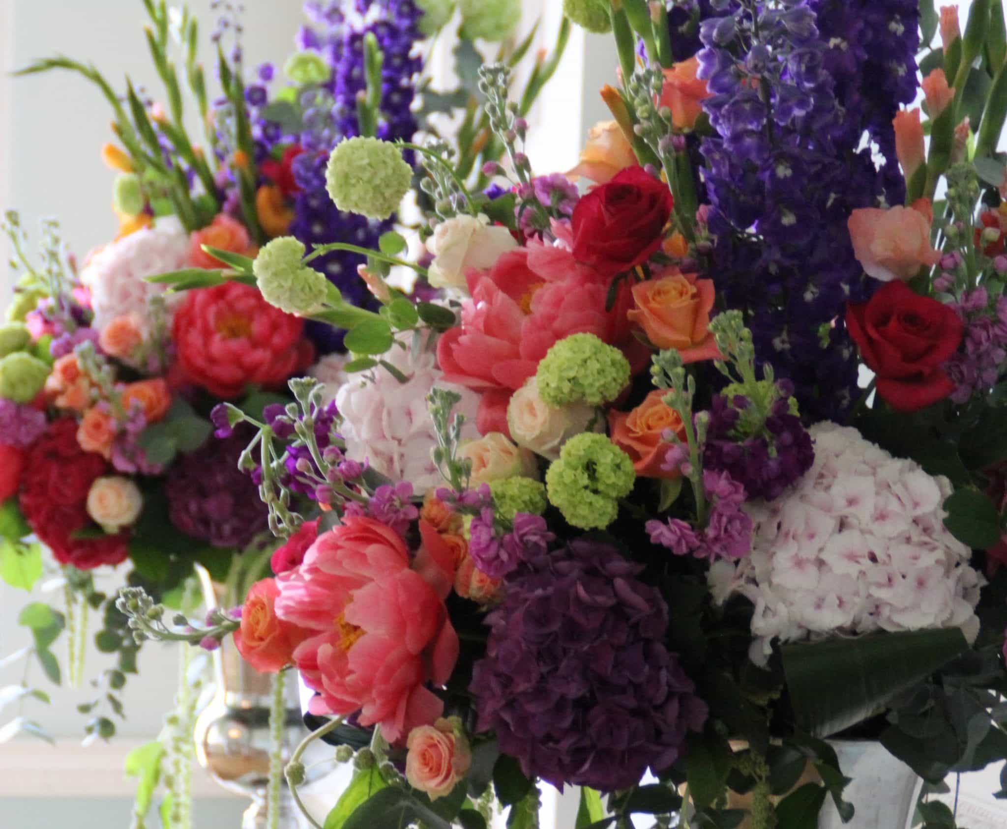 This is one of my favourite weddings at Great Fosters in my nearly 10 years as a recommended wedding florist at Great Fosters. In a beautiful colour scheme which in itself was just gorgeous, this wedding rocked even more by combining modern Ghost chairs and our beautiful flower-wall panels, with contrastingly relaxed and more informal flower displays. A yin & yang combination which looked really amazing!