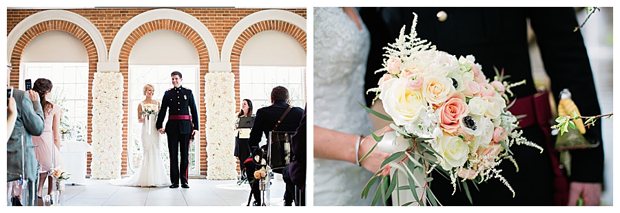 As a recommended wedding florist at Great Fosters Hotel in Egham for many years, we get to arrange lots and lots of beautiful wedding flowers, so it is always hard to pick which weddings to feature. But Natalie & Chris’ wedding last spring easily made the list! The beautiful blush and peach fuzz colour scheme suited the venue really well and is such a strong incoming trend for spring and summer weddings. There were also so many unique touches to this wedding that it just had to make the list!