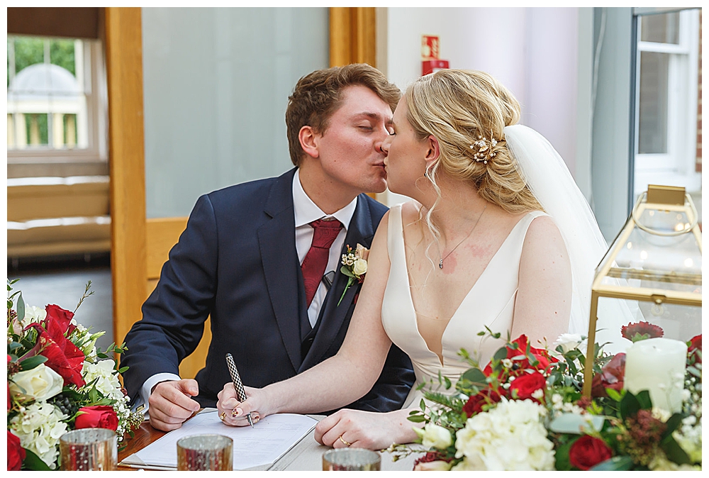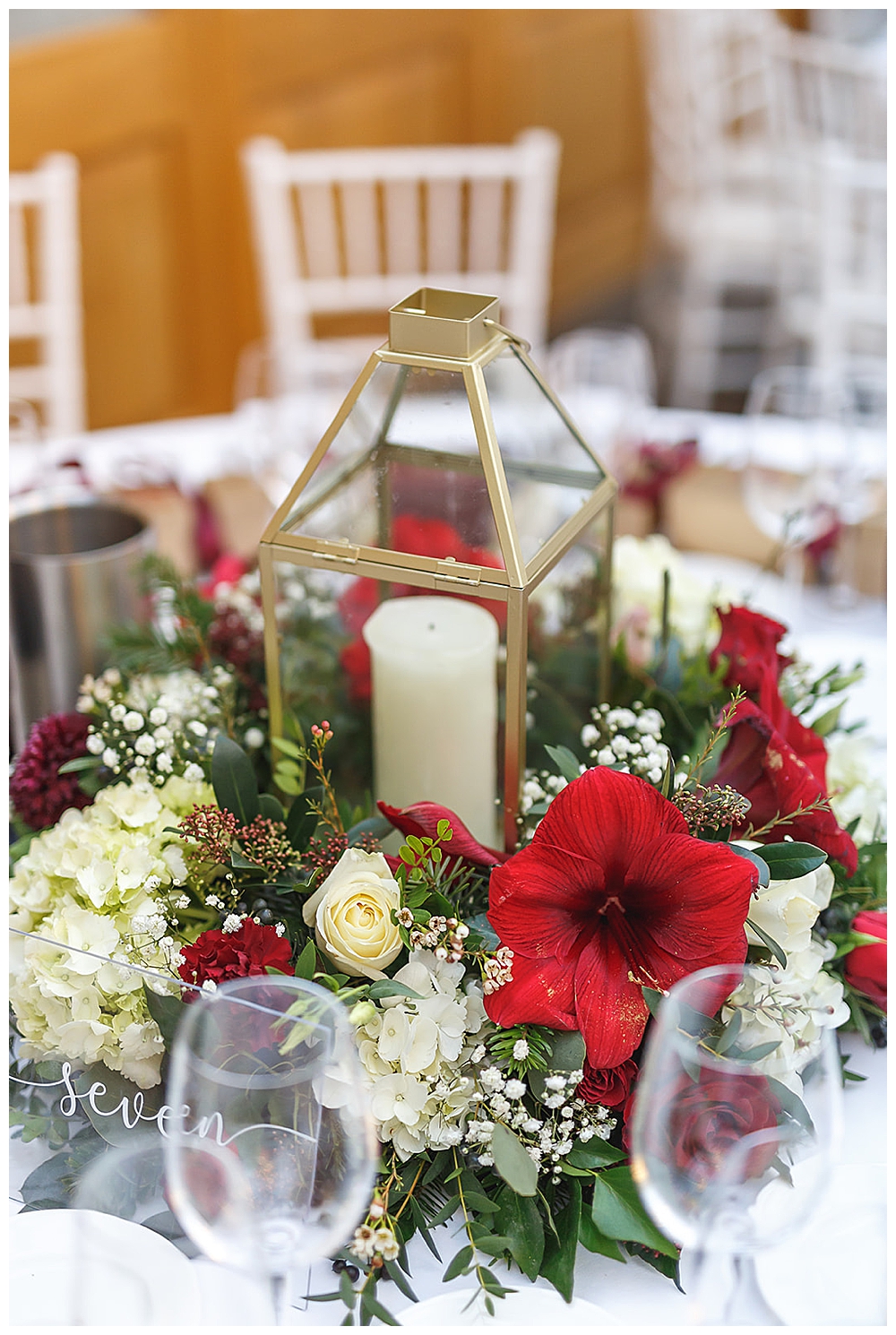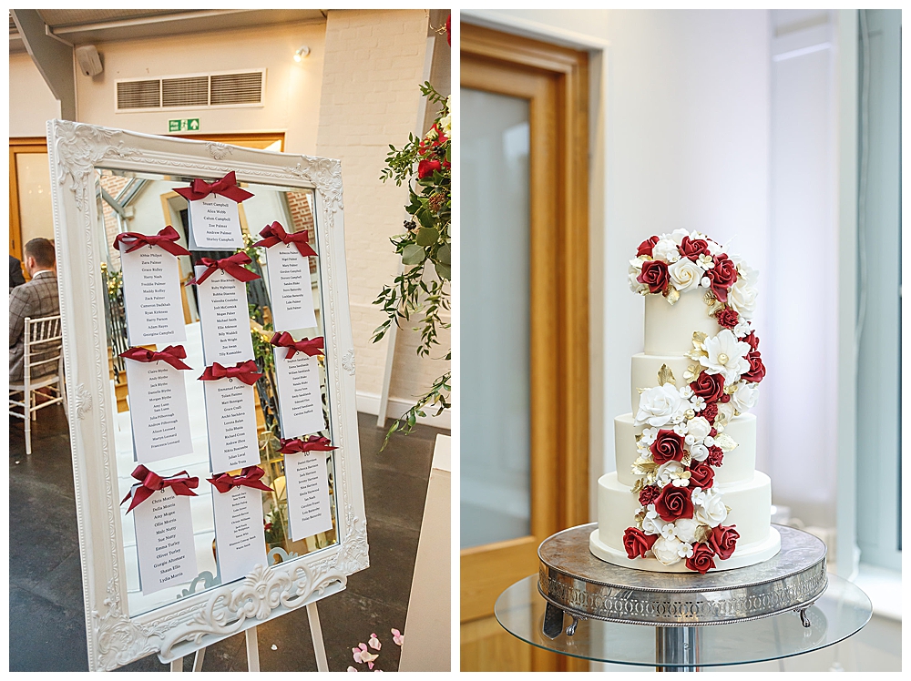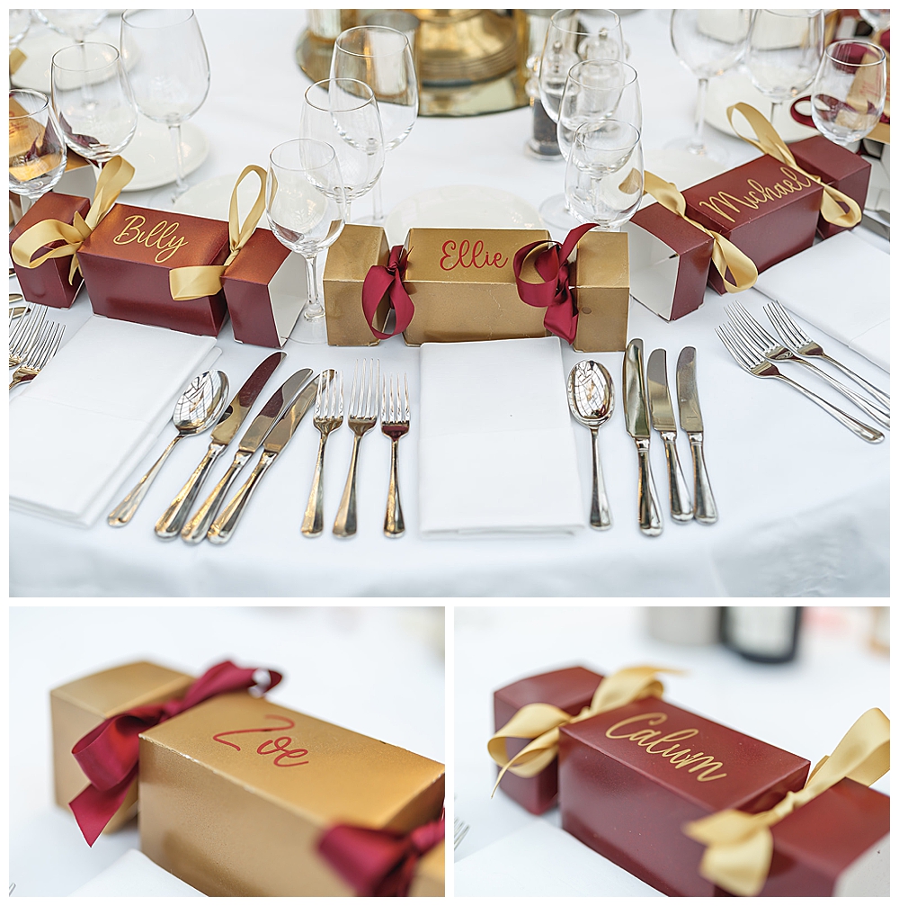 This Christmas wedding at Botleys Mansion was a real joy from start to finish, kicking off by my meeting with Zoe back in the spring,   It really doesn’t get more festive than this winter wedding.  Landing in between Christmas and the New Year, Zoe and Callum’s wedding was such a brilliant celebration, with quintessentially Christmas colours.  Zoe and Callum wanted to go the whole way with the festive look, with pillar box red and ivory flowers, gold accents, Christmas baubles and seasonal fir foliage.