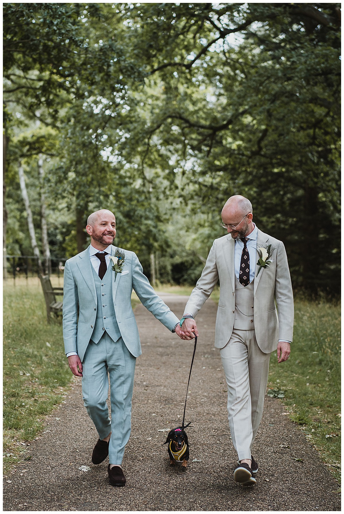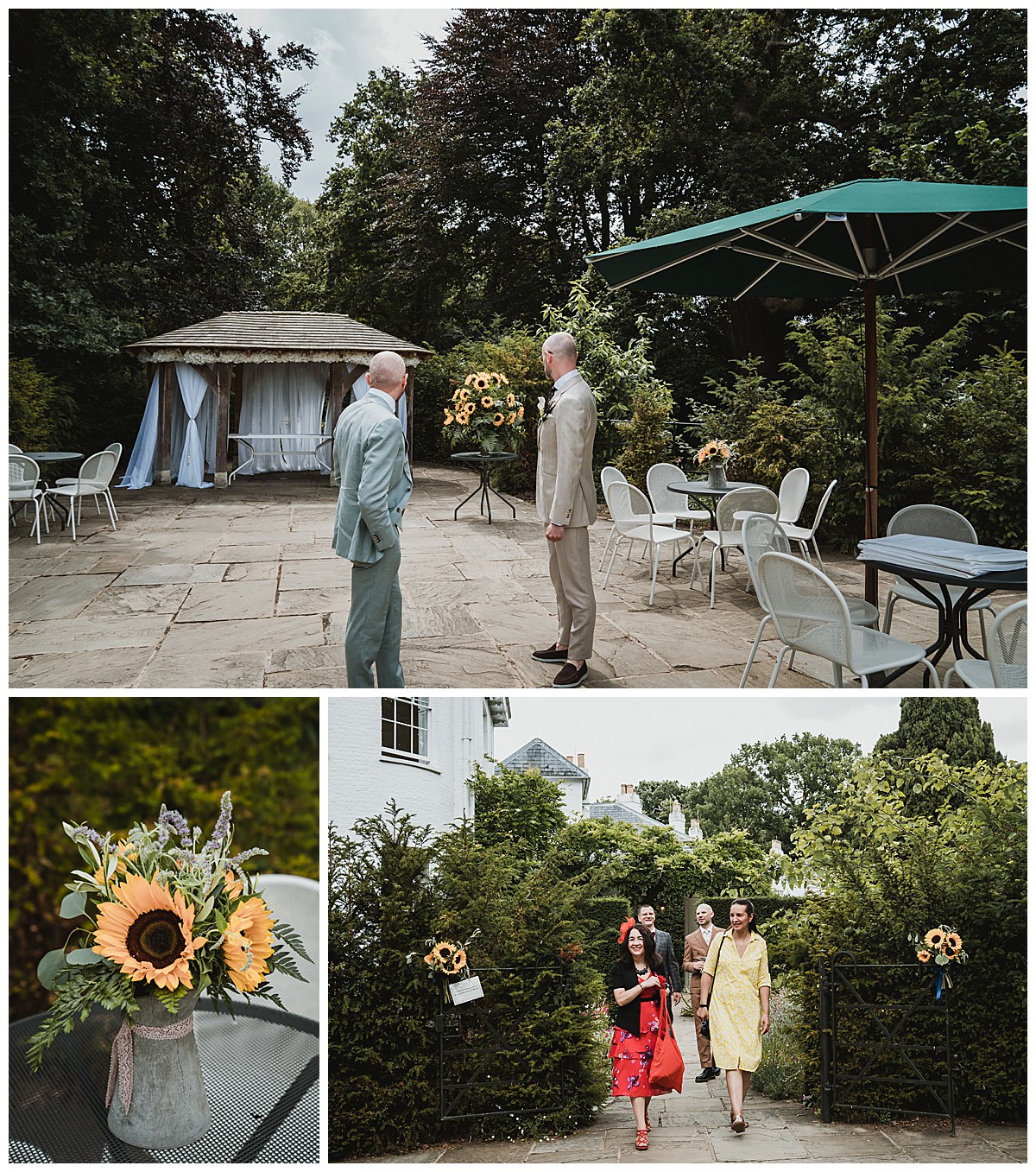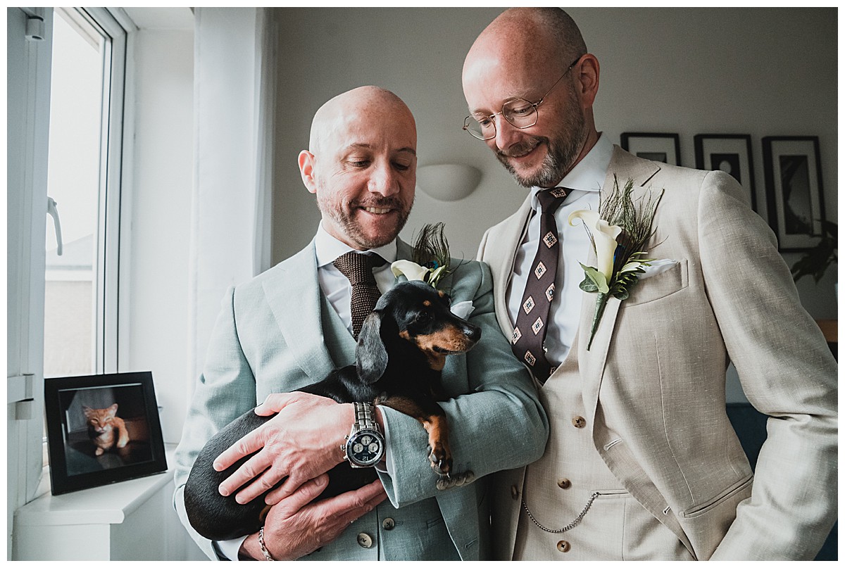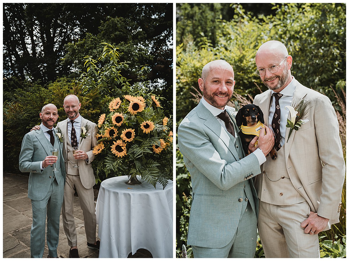 The trio of singers provided the entertainment during the wedding breakfast, Peter & Stefano provided much love and funny photos posing, and Peter & Stefano’s adorable sausage dog (with matching yellow sunflower themed harness) was the star guest. I wish I’d known about her before as have always wanted to create a cute canine circlet or a dog collar, a really missed opportunity here…