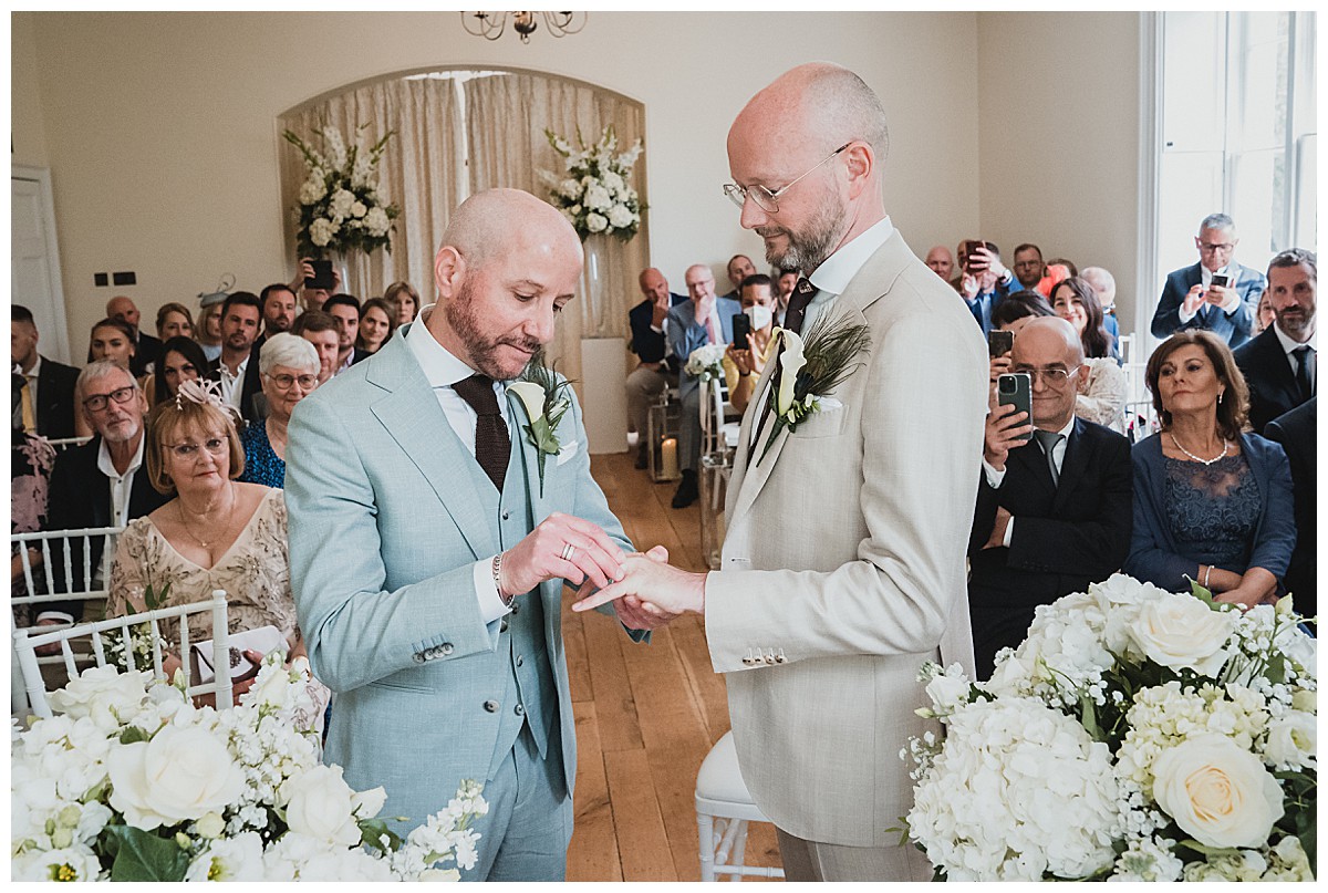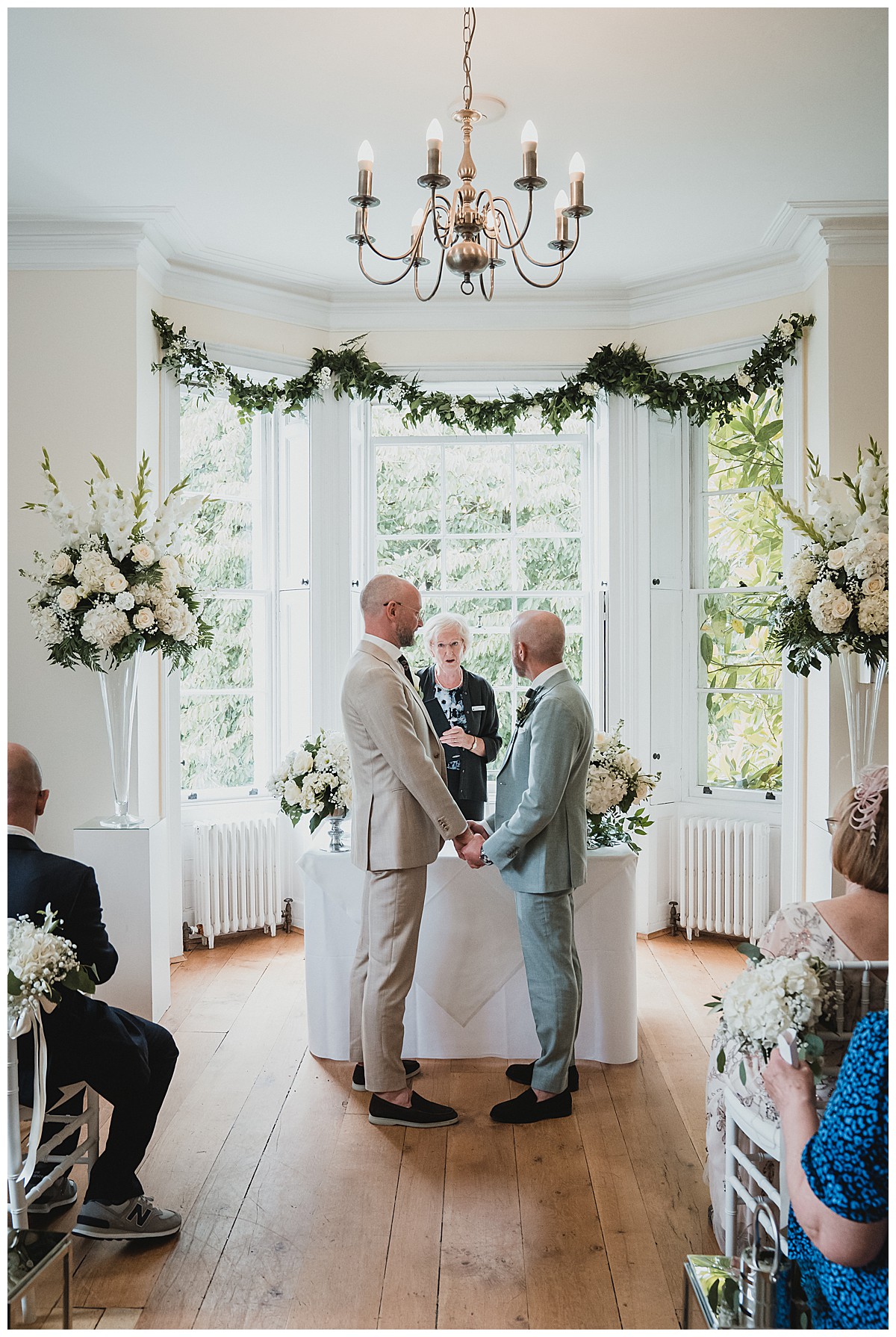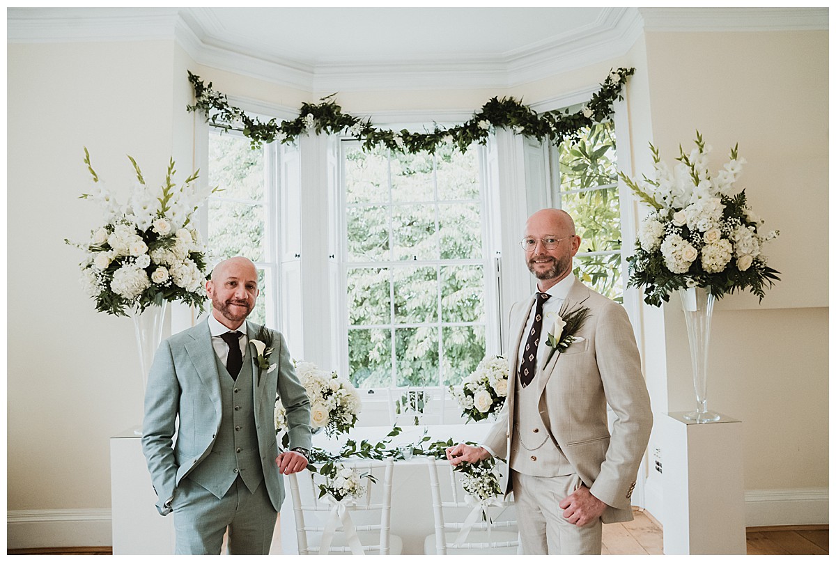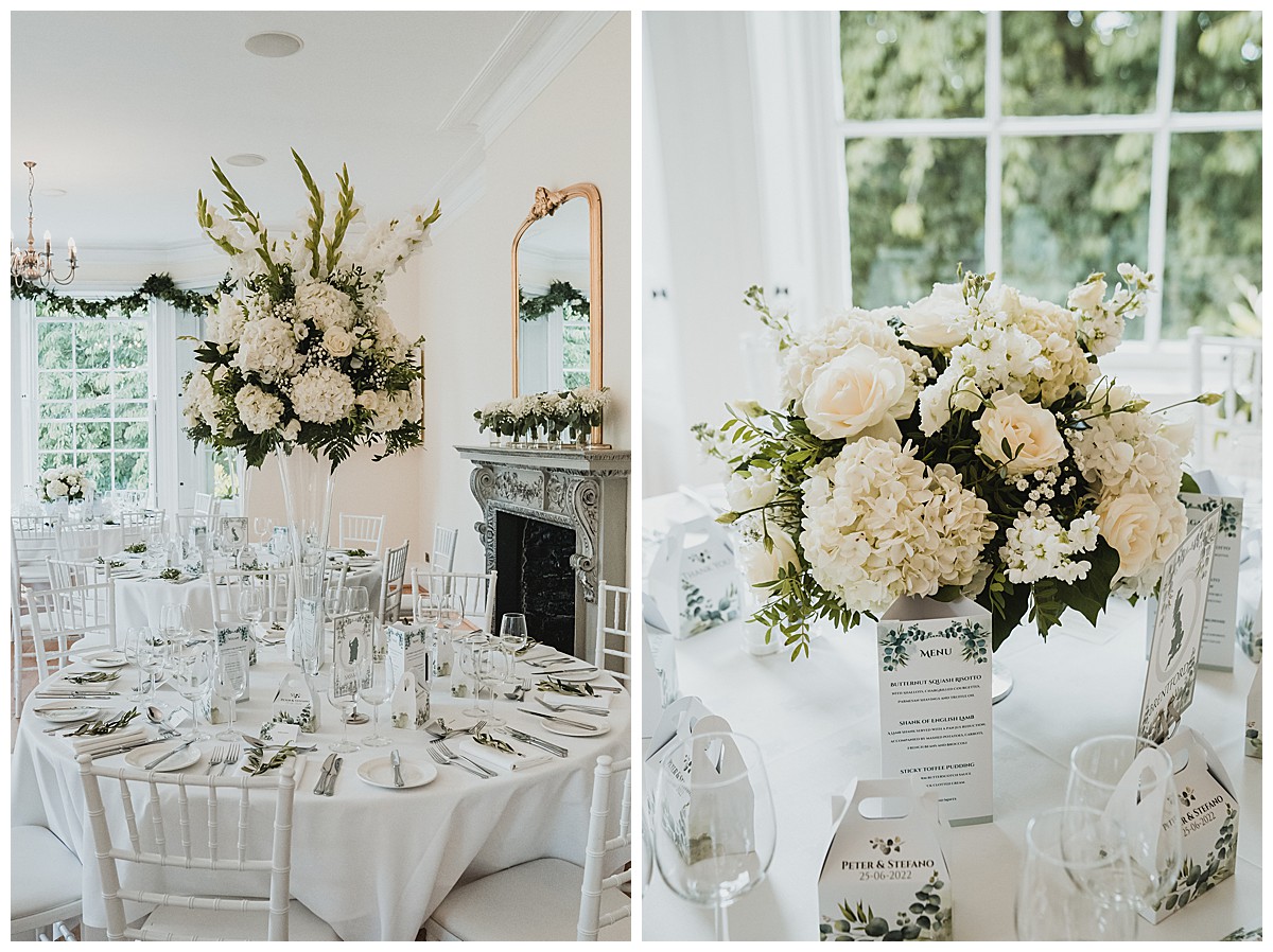 I can’t recall how Peter & Stefano had heard of us, it might have been through some of their good friends, but as soon as I chatted to them to find out more about their plans, I instantly knew I would really enjoy this wedding at Pembroke Lodge. They really wanted to have a very elegant wedding with some of Peter’s favourites – white hydrangeas and gladiola which reminded him of his childhood and his gran’s garden, and some of Stefan’s favourite flowers – sunflowers. The 2 looks don’t normally come together as they are quite different styles and looks so we decided to keep them separate but together. The flowers needed to be beautiful but not pretentious and make an impact without saying “look at me”, so that Peter & Stefano could have an amazing relaxed day with their nearest and dearest.