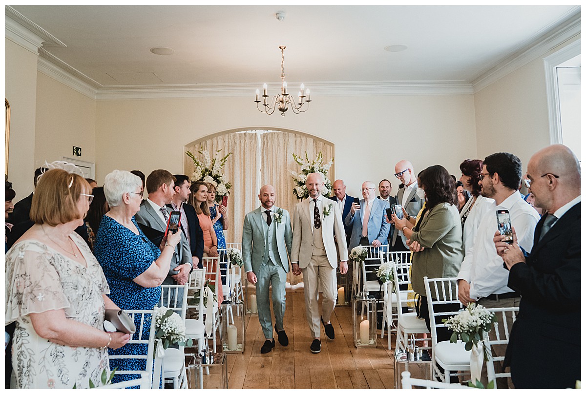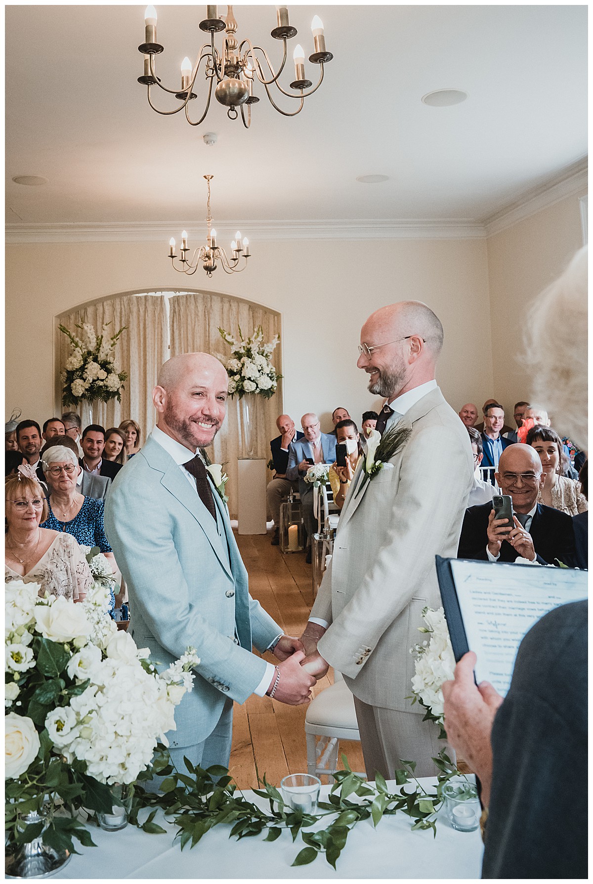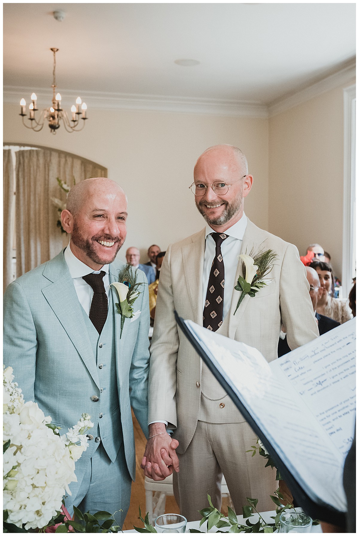 I can’t recall how Peter & Stefano had heard of us, it might have been through some of their good friends, but as soon as I chatted to them to find out more about their plans, I instantly knew I would really enjoy this wedding at Pembroke Lodge. They really wanted to have a very elegant wedding with some of Peter’s favourites – white hydrangeas and gladiola which reminded him of his childhood and his gran’s garden, and some of Stefan’s favourite flowers – sunflowers. The 2 looks don’t normally come together as they are quite different styles and looks so we decided to keep them separate but together. The flowers needed to be beautiful but not pretentious and make an impact without saying “look at me”, so that Peter & Stefano could have an amazing relaxed day with their nearest and dearest.