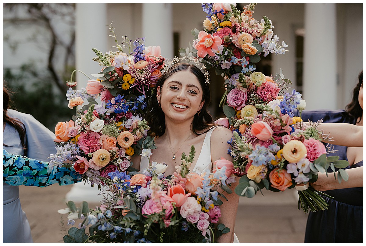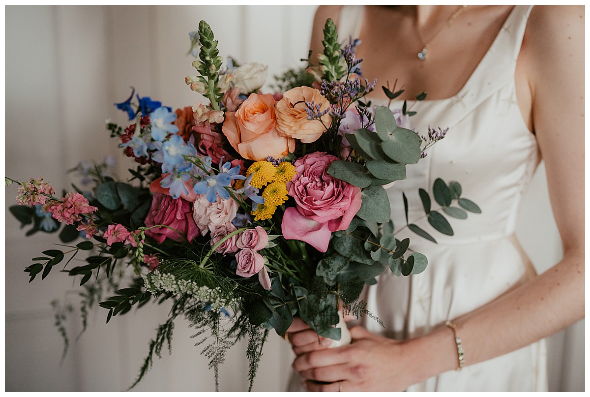 Colourful wedding flowers at a gorgeous outdoor wedding