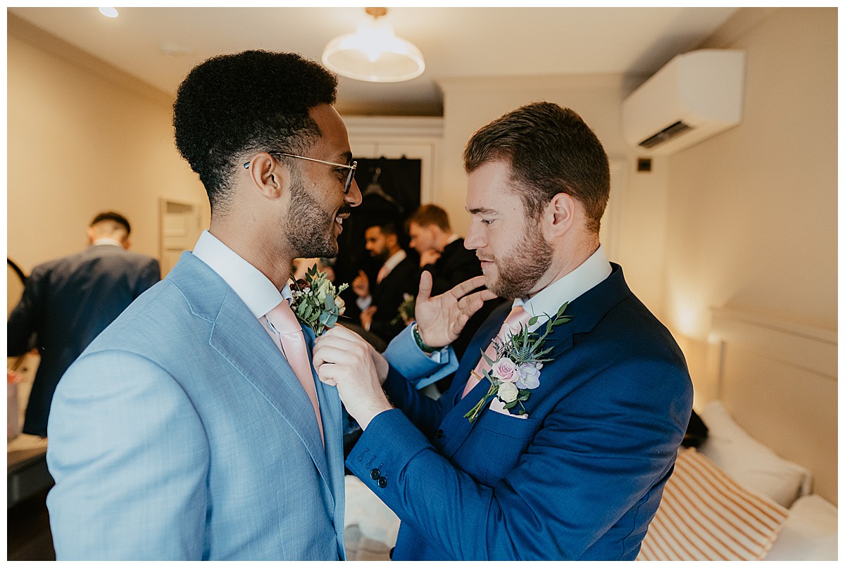 We arrived at the hotel nice and early, with the bridal flowers, to be greeted by much excitement, happiness and laughter in the bridal suite. There was even a life sized cardboard cut out model of Alex keeping a watchful eye over the bridal party preparations. Laura who is always happy and smiley, had a permanent smile on her face and was delighted that the day was so beautiful and sunny even early in the morning. We had always planned for this to be an outdoor wedding at Pembroke Lodge but with a May wedding it isn’t always to be. Luckily the day was glorious and more like a July day, so we didn’t need to resort to plan B.