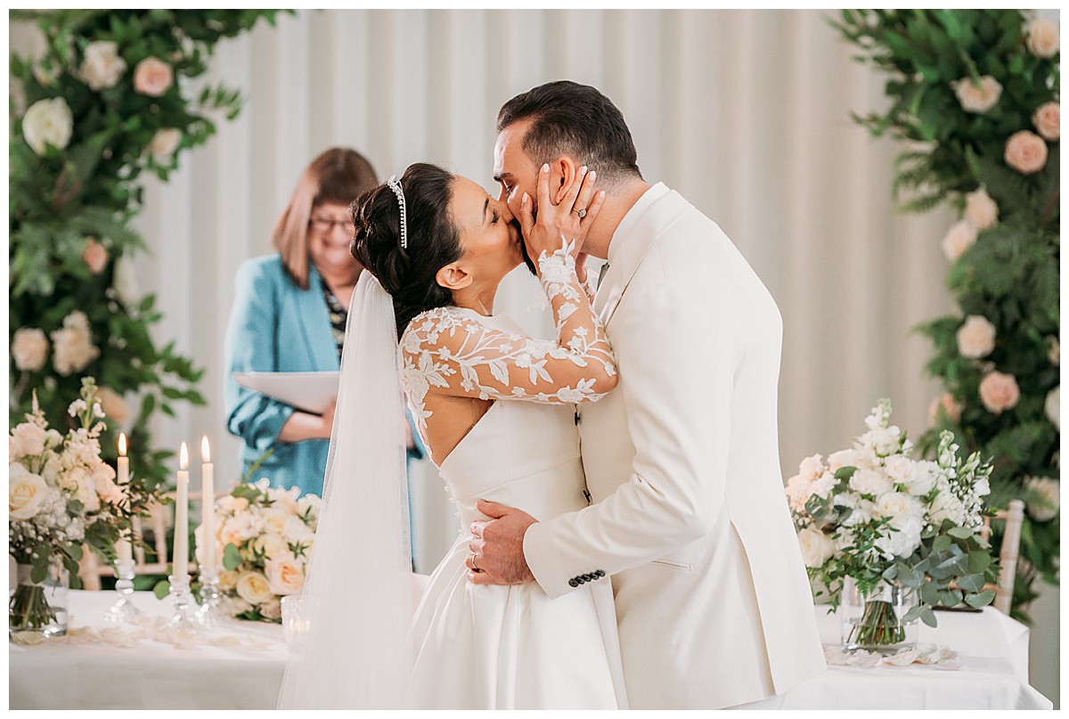 Georgina and Charles held their wedding in the beautifully light Oval room at Coworth Park in Ascot, a luxurious wedding venue part of the Dorchester group. Opting for a very classy mix of ivory with a hint of palest creams, the effect was totally mesmerising. The couple had had a clear vision for how they wanted their day to look and feel and it included an abundance of flowers which I am always happy to hear.