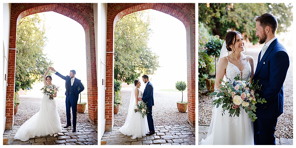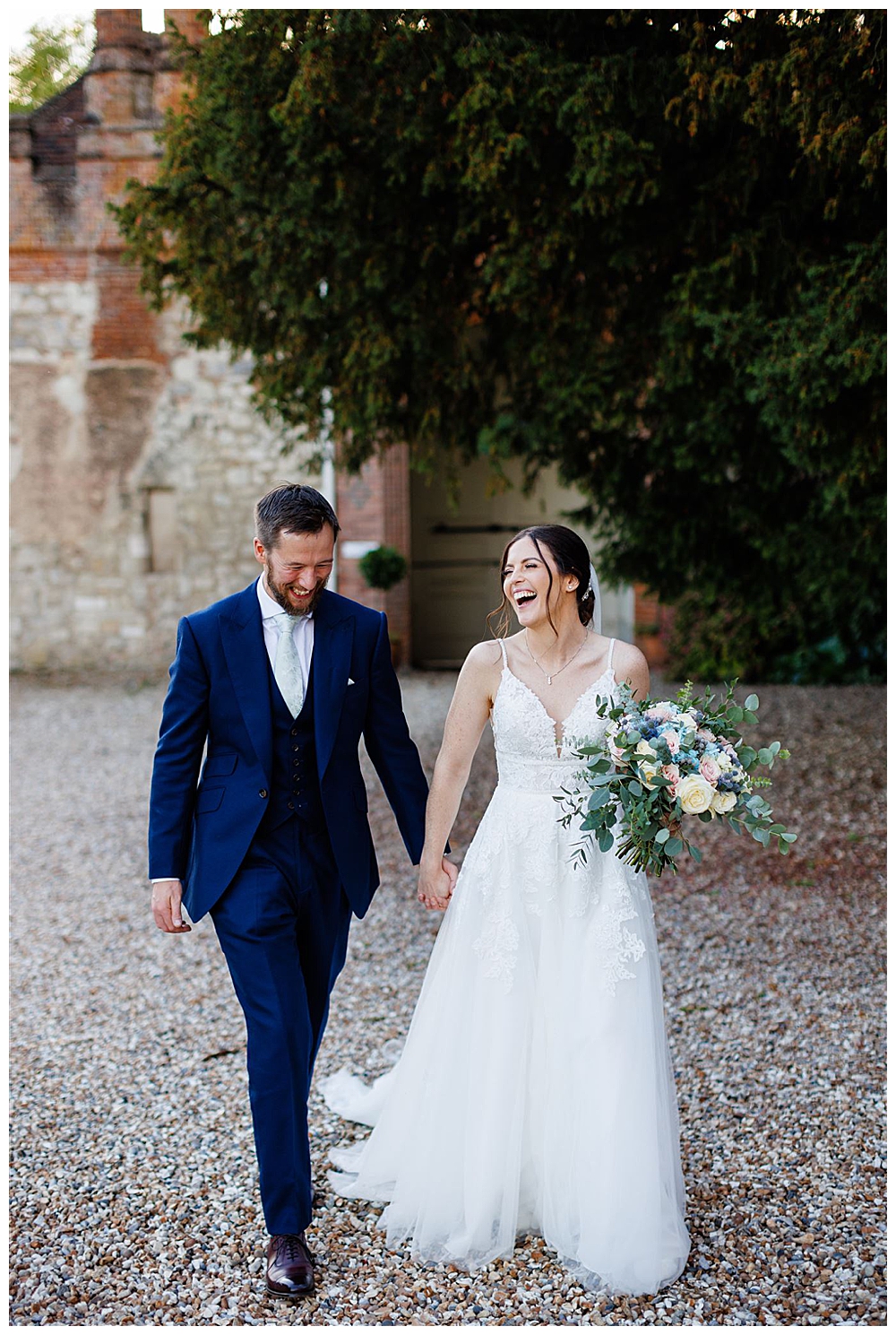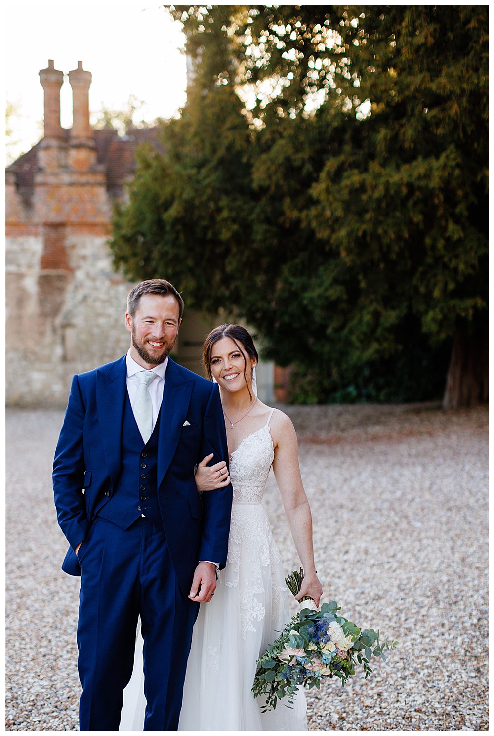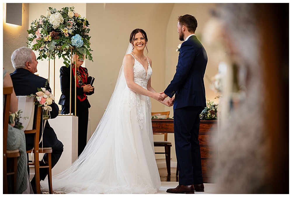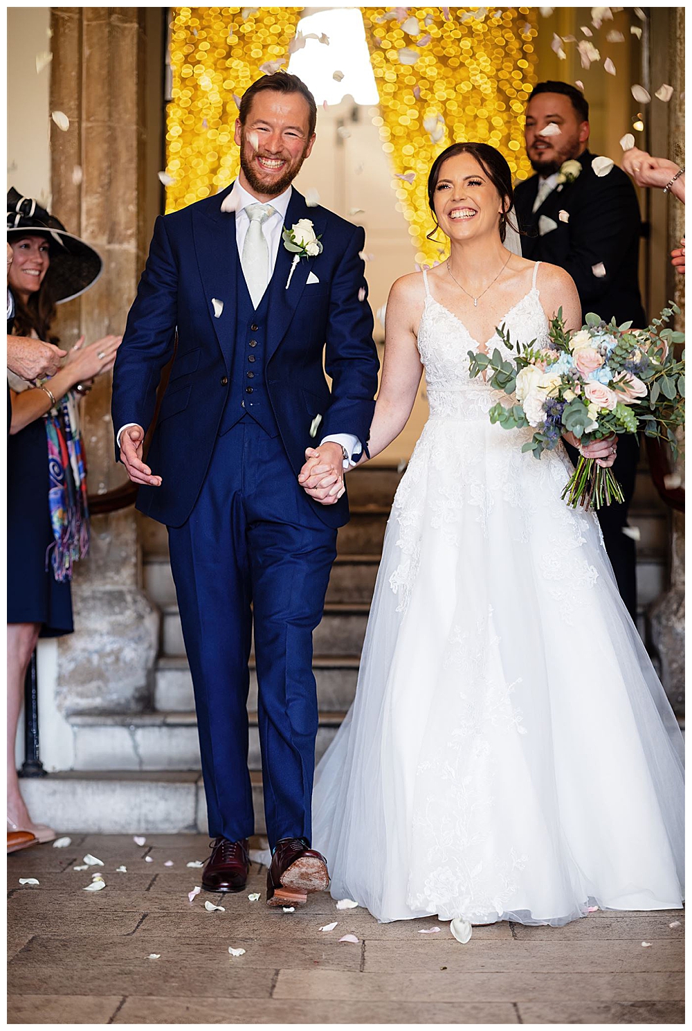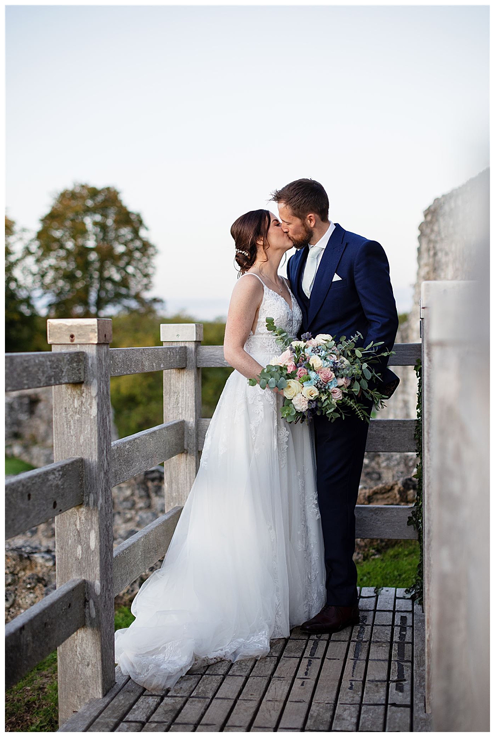 For Leah and Aaron’s wedding, I absolutely loved the dusty blue and pink wedding flowers mix we created. The wedding was at historic Farnham Castle, with the ceremony in the beautifully light Lantern Hall. With a grand arched recess behind the ceremony table and fantastic deep arched windows along one side, the room is so impressive and stunning, dressing it with flowers is an absolute pleasure.