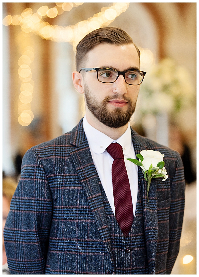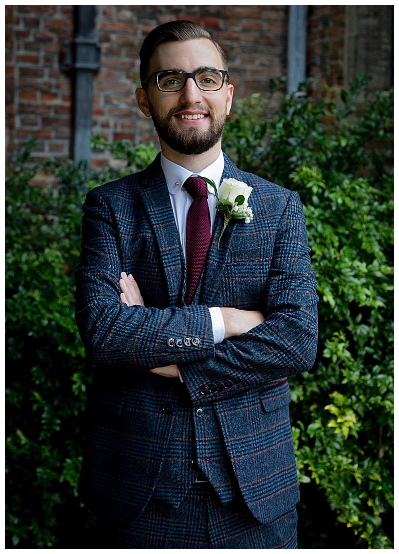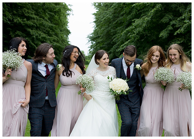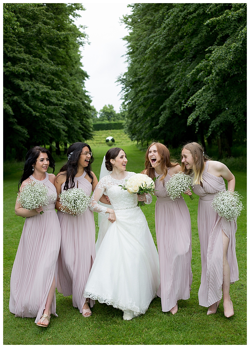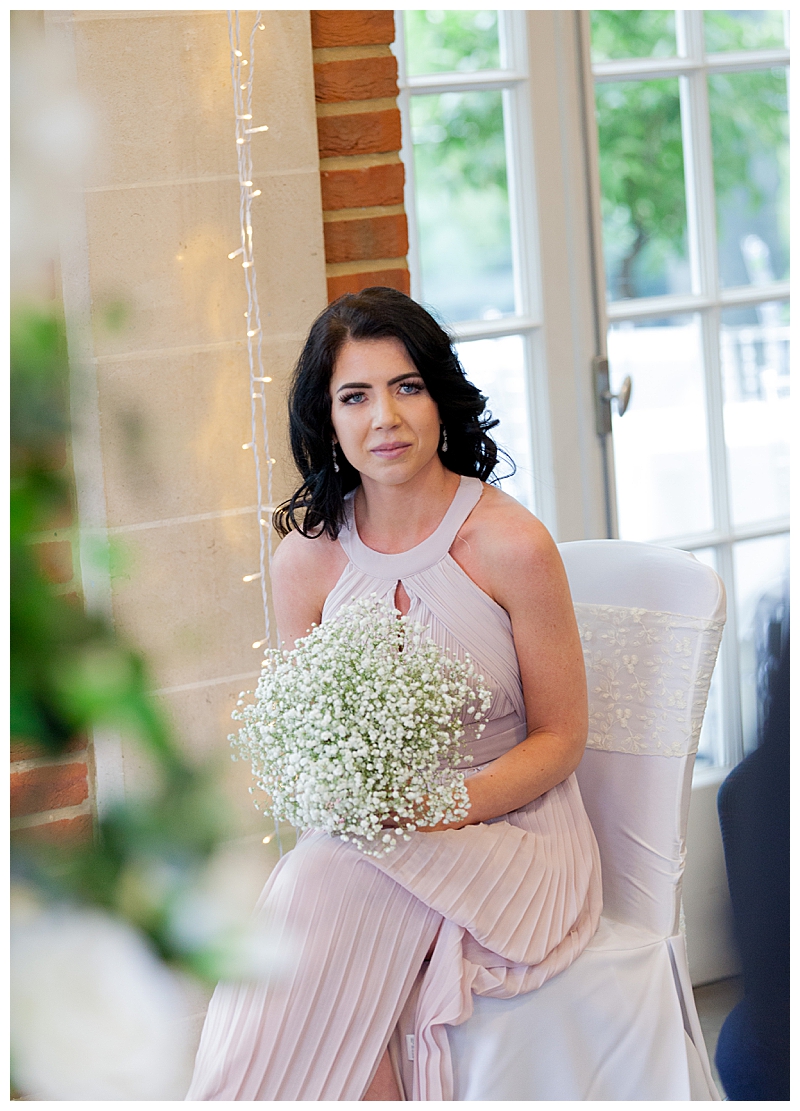 Jessica carried a pretty bouquet of Avalanche roses and contrasting Ralphi and ruscus, and the bridesmaids matched her in colour only, with lacey bouquets of gypsophila otherwise known as baby’s breath. Jordan wore a matching buttonhole and looked really smart in his navy check suit.