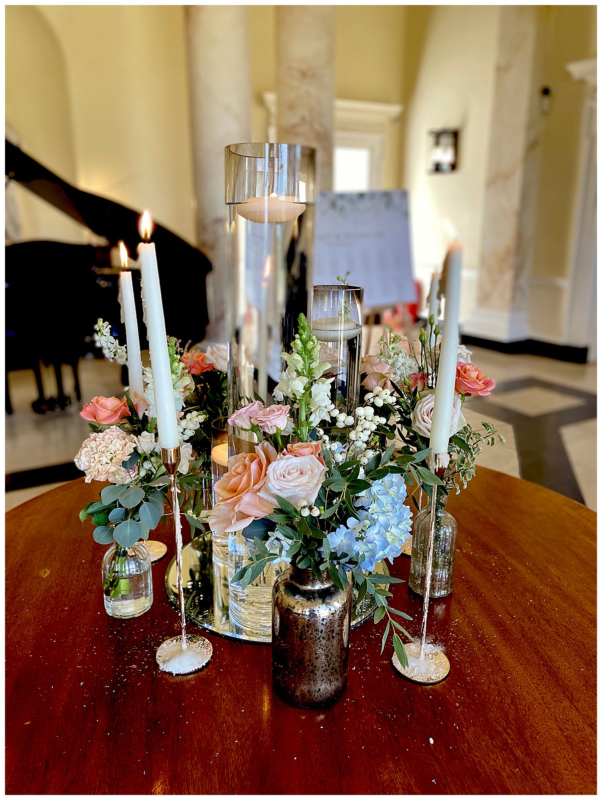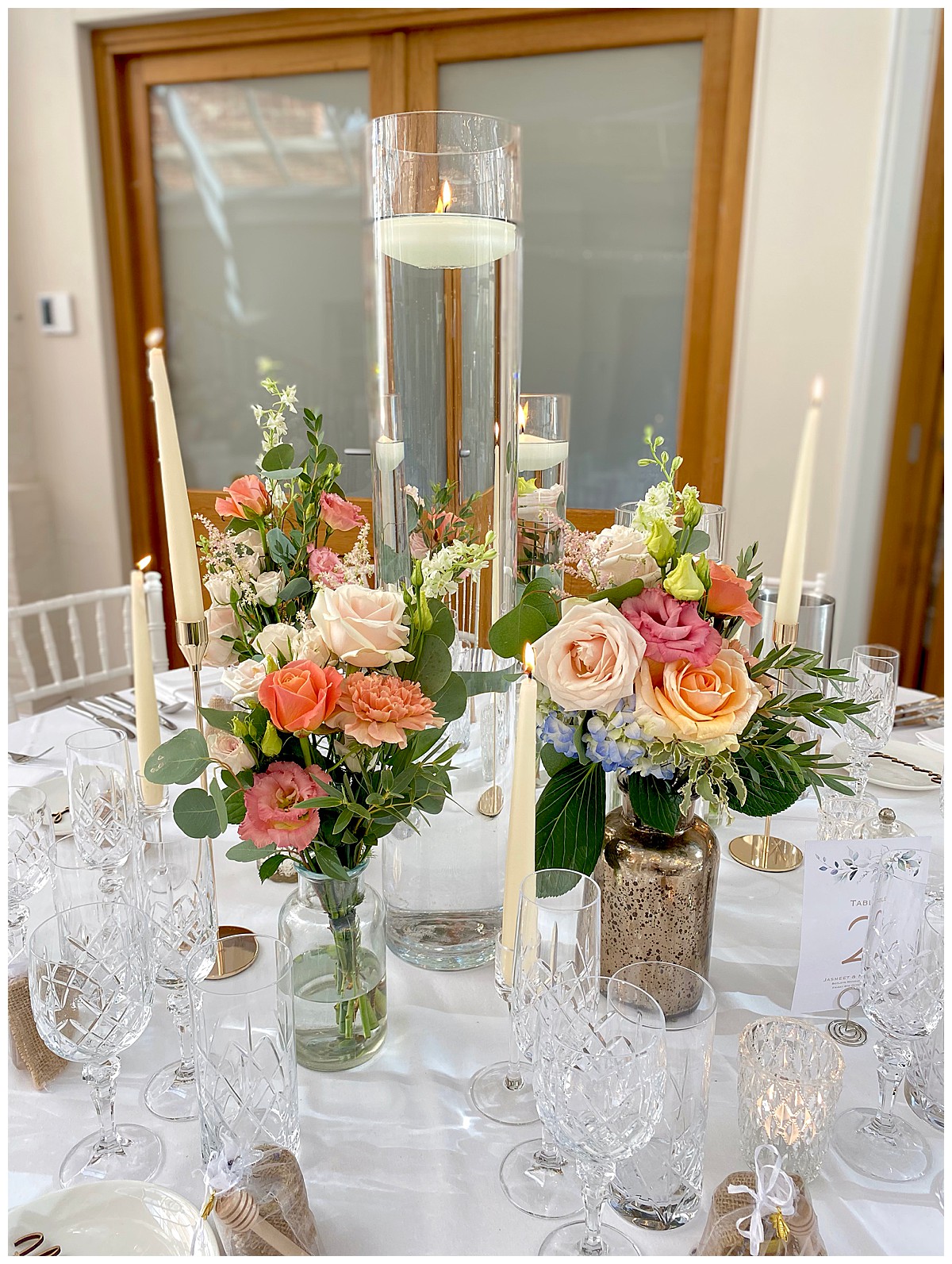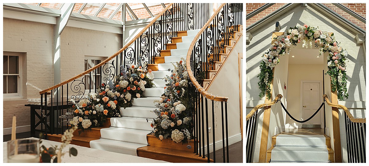 Throughout the 2 days, a beautiful floral runner dressed the front of the venue to welcome guests over the course of the 2 days, and a pretty collection of candlelight and flower posies were used to dress the entrance foyer table, continuing on with the relaxed vibe decor for the whole event.