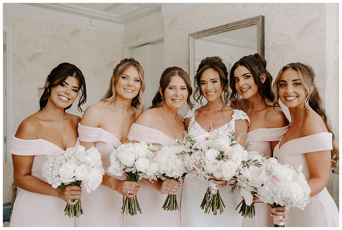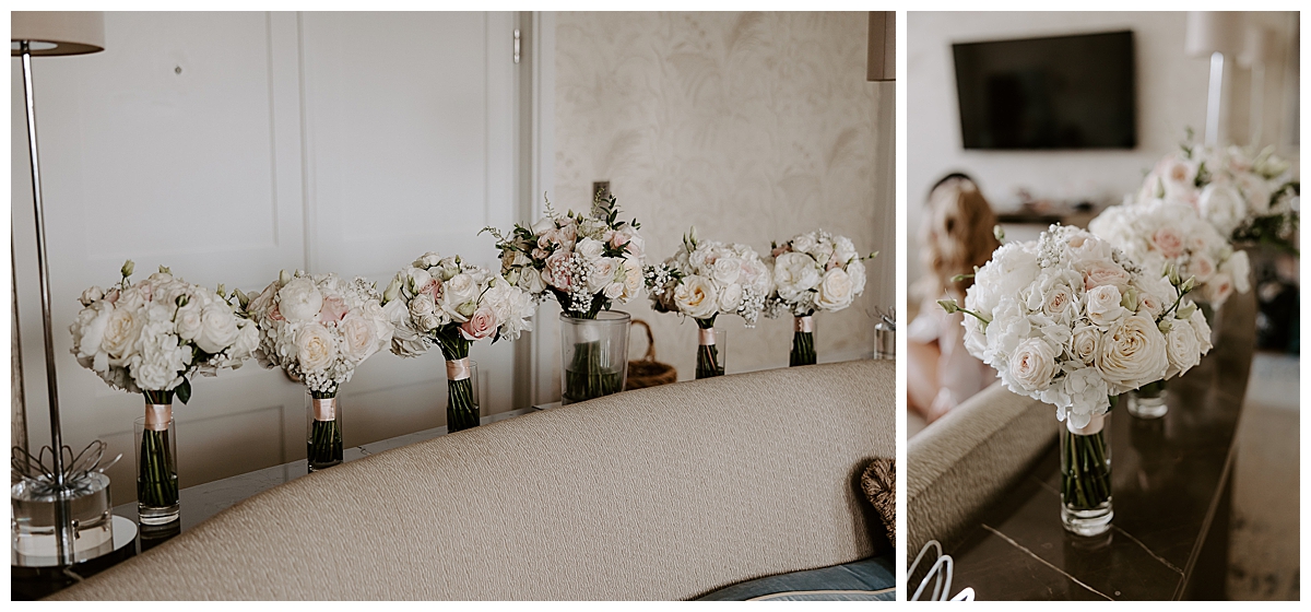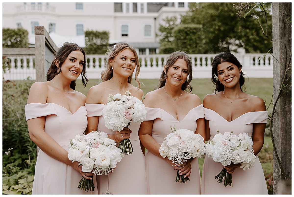 The bridesmaids wore light and palest blush dresses so their bouquets were made to match Chloe’s, with slightly simpler but equally dreamy florals – they matched their dresses perfectly and smelt divine.