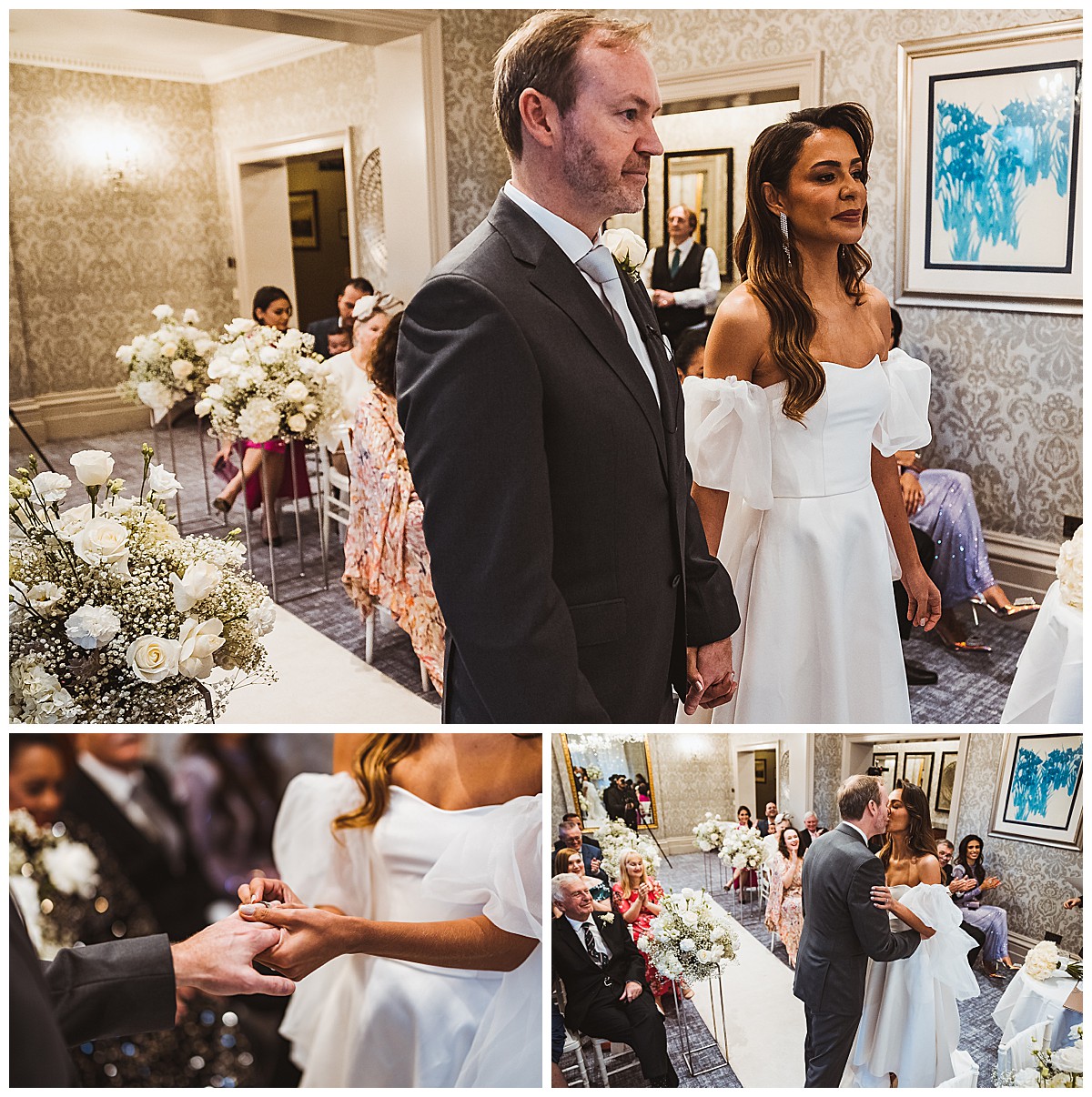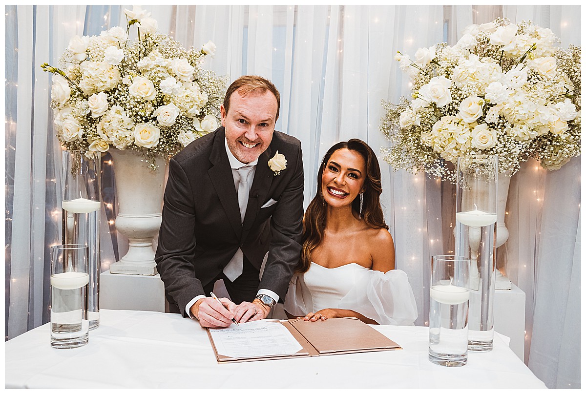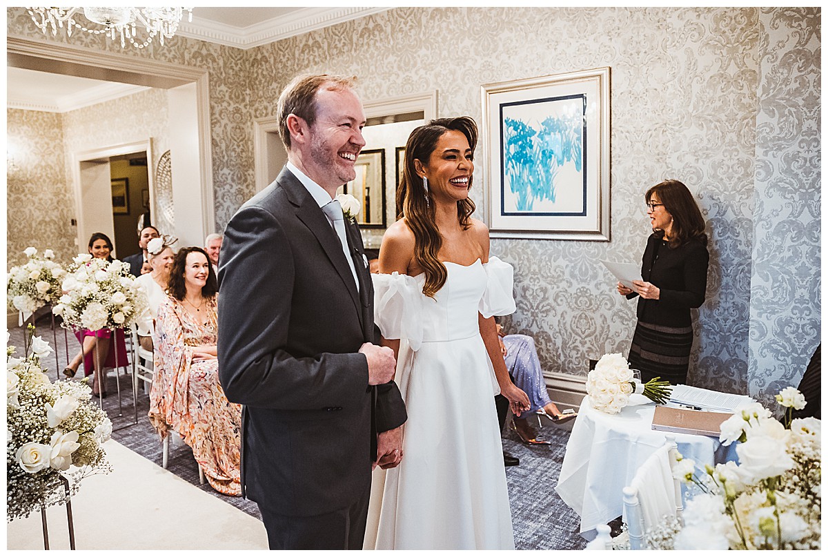 Steven and Keillani envisioned a romantic and dreamy wedding atmosphere, with a touch of winter magic. Considering a pure white look or adding frosty green foliage, they ultimately decided on an enchanting all-white theme. This choice perfectly complemented the intimate ceremony and wedding breakfast rooms at The Petersham Hotel in Richmond. It was our third time creating beautiful Petersham Hotel wedding flowers and an absolute joy!