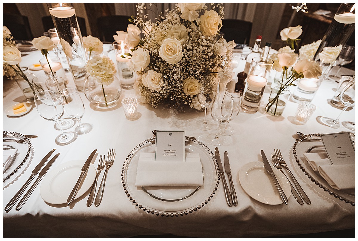 Steven and Keillani’s white winter wonderland wedding at The Petersham Hotel was a testament to the power of fully embracing a theme and executing it flawlessly. The ethereal white flowers and clever repurposing of arrangements created a sense of unity throughout the event. The Petersham Hotel provided the perfect backdrop for this enchanting celebration, and the impeccable attention to detail ensures this wedding will be cherished for a lifetime. From the beautiful floral accents to the magical transformation of the banquet table, every element worked together harmoniously, leaving a lasting impression on all who attended. We feel so privileged to have been part of S&K’s amazing wedding day at The Petersham!