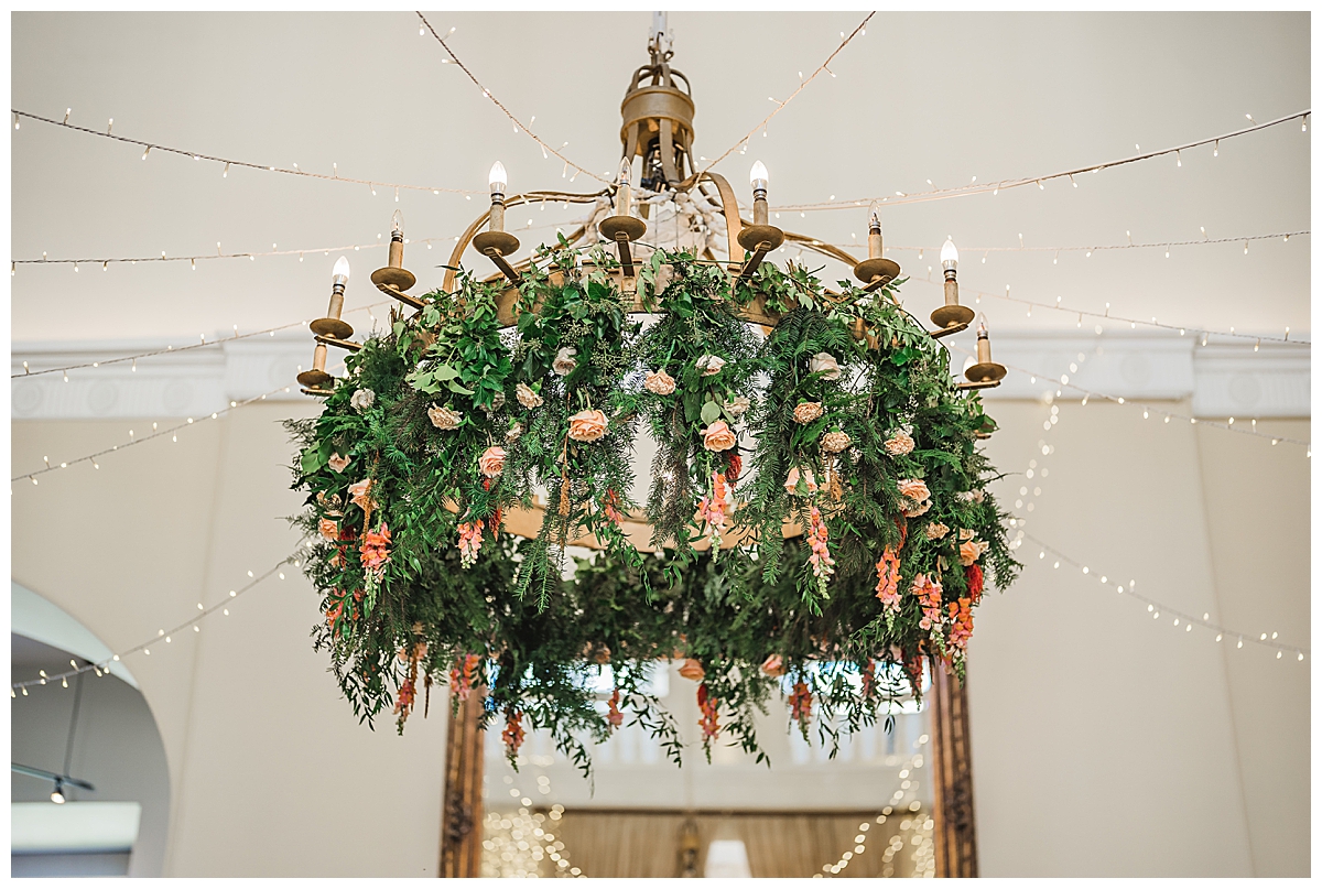 Back into the Great Hall for their wedding breakfast, Funmi and Taylor preferred to have low guest table centrepieces, for which we used our gorgeous golden rose bowls. But we were so glad that they took our advice to add some high up impact – this is so so needed to suit the room’s absolutely enormously tall ceiling, and to tackle this, we created the most amazing feature chandelier of flowers… Beautiful and atmospheric ceiling string lights radiating out from the chandelier completed the look perfectly.