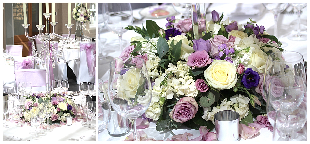 Shereé and Stephen’s wedding was no exception, with one of my favourite colour scheme of ivory, lilac and deep purple blends, as well as pretty decor touches everywhere, and glamorous crystal candelabras centrepieces.