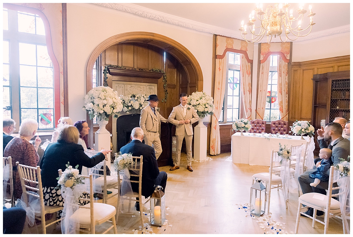 They pulled out all the stops when it came to their winter wedding at Pennyhill Park, with lots and lots of lovely wedding flowers and floral decor for both the ceremony room, as well as the wedding table. The whole day unfolded within the beautiful library at Pennyhill Park, which was first used for teh ceremony and then turned around during photos to a gorgeous dinner set up with a gorgeously decorated long table for all the guests.