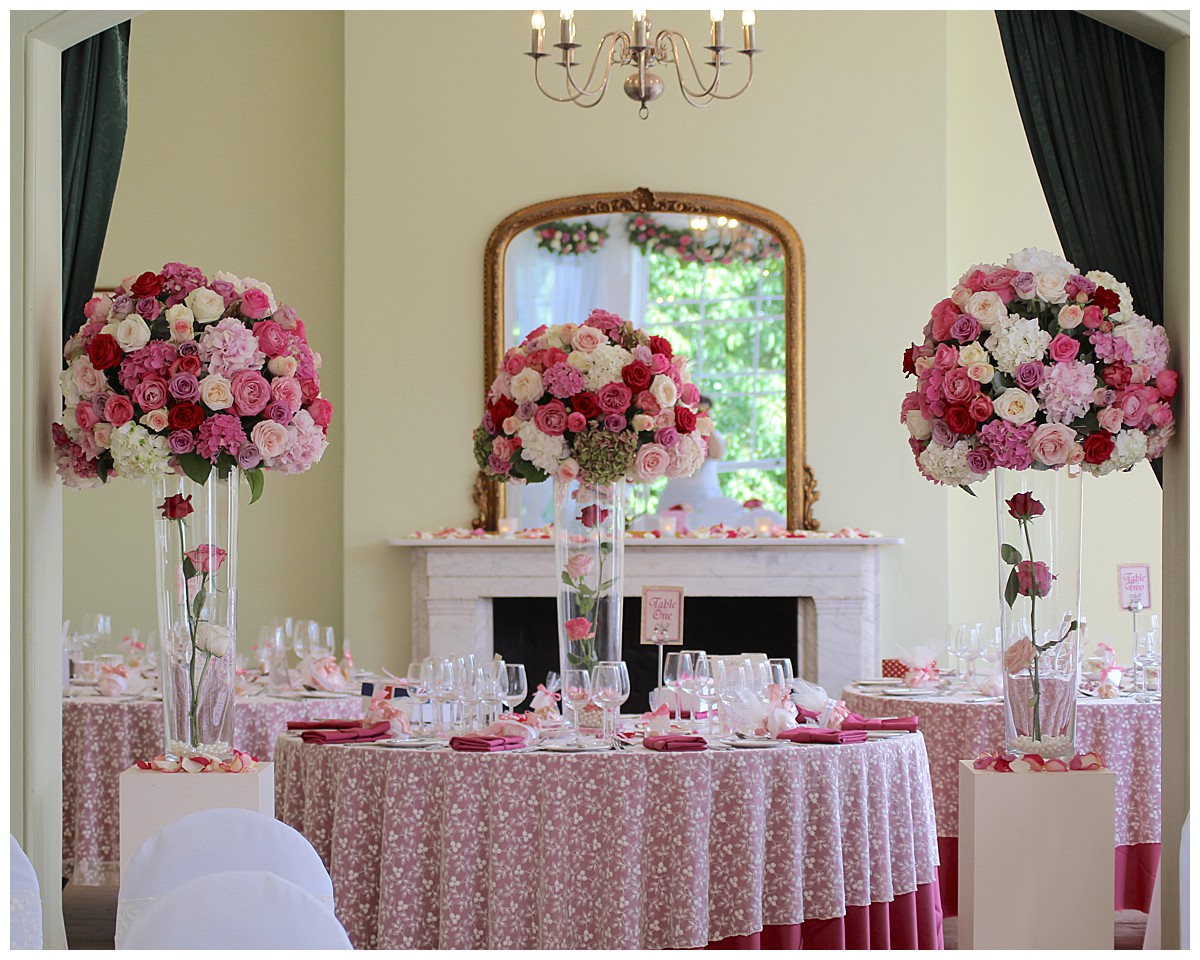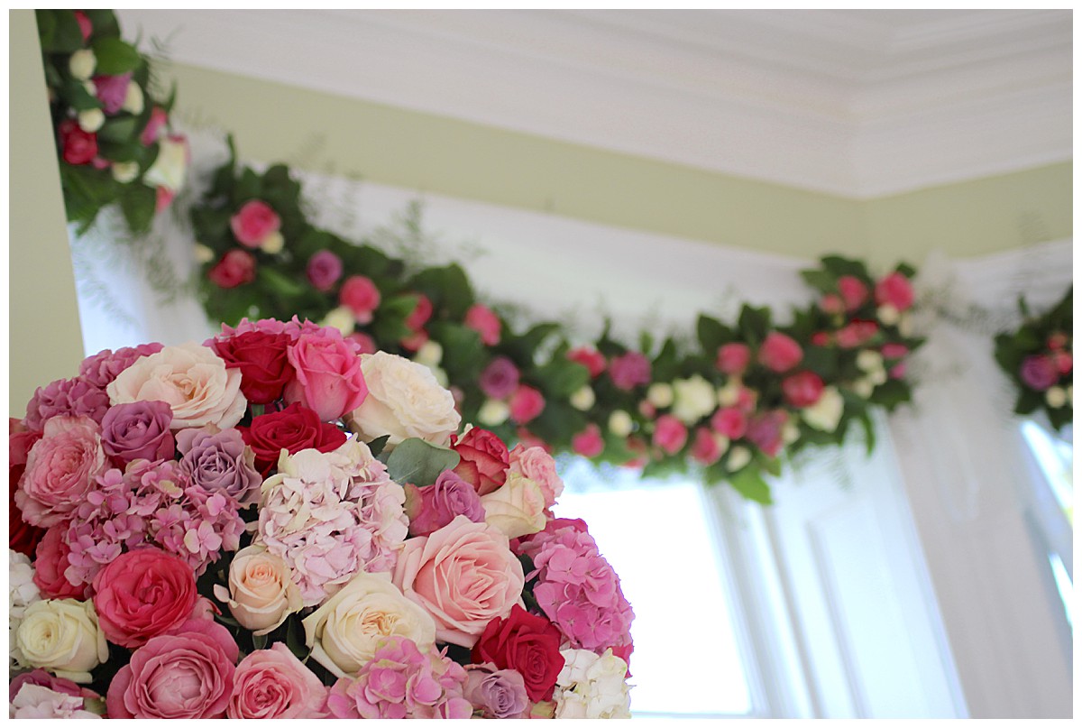 Gorgeous mixed pink wedding flowers at Pembroke