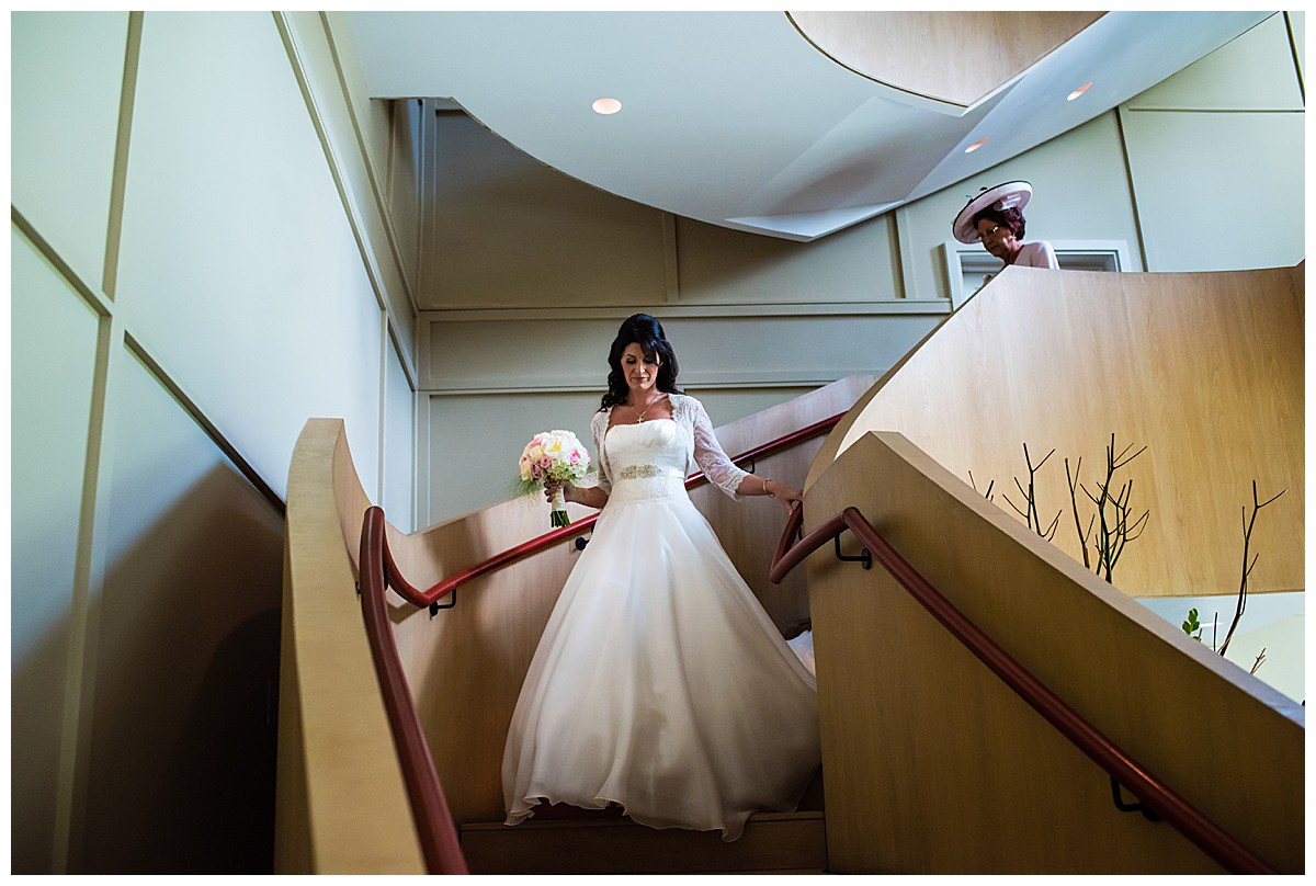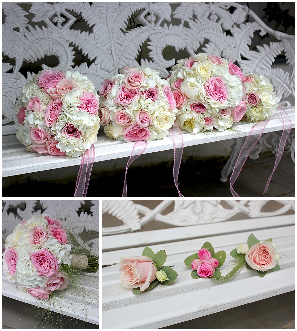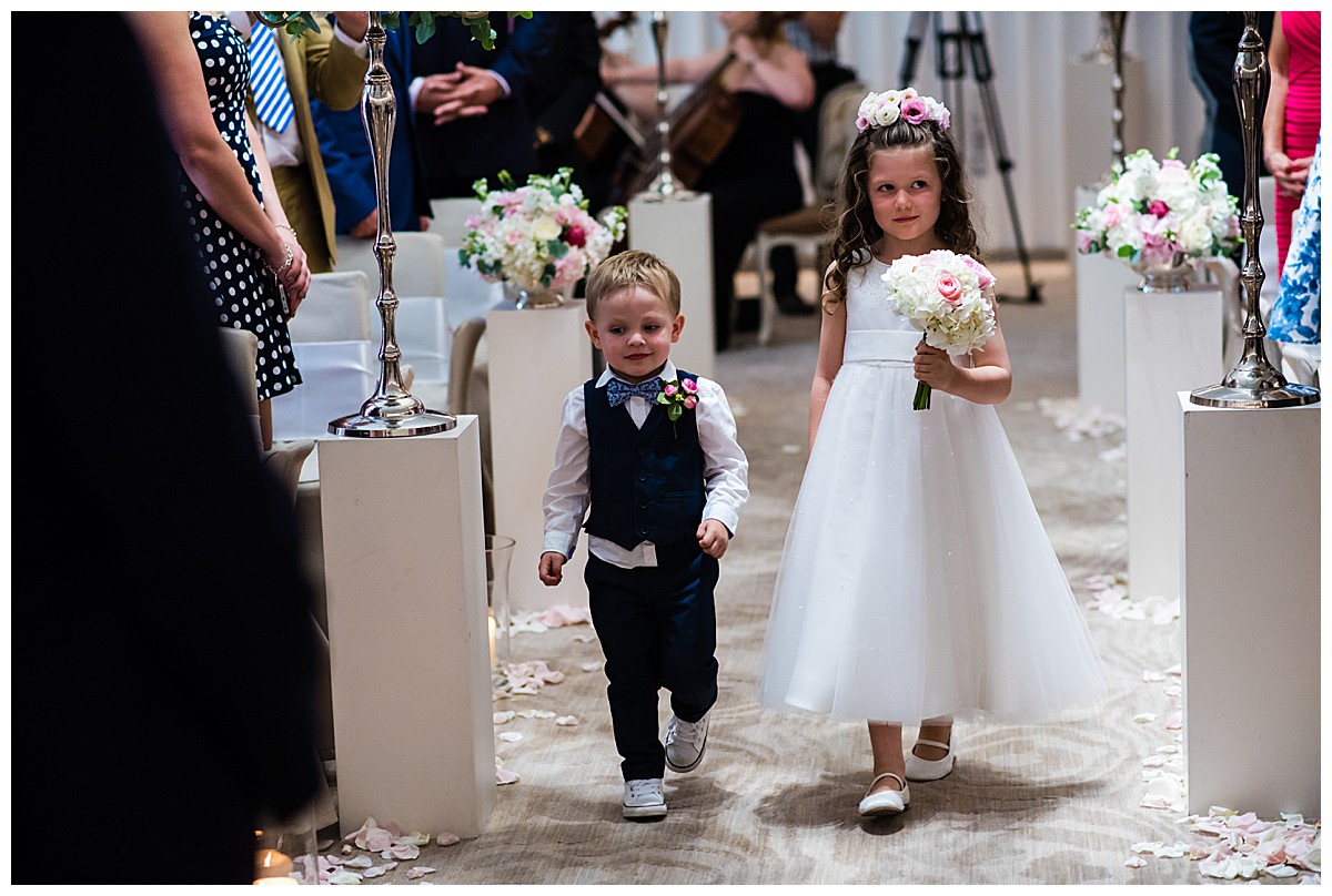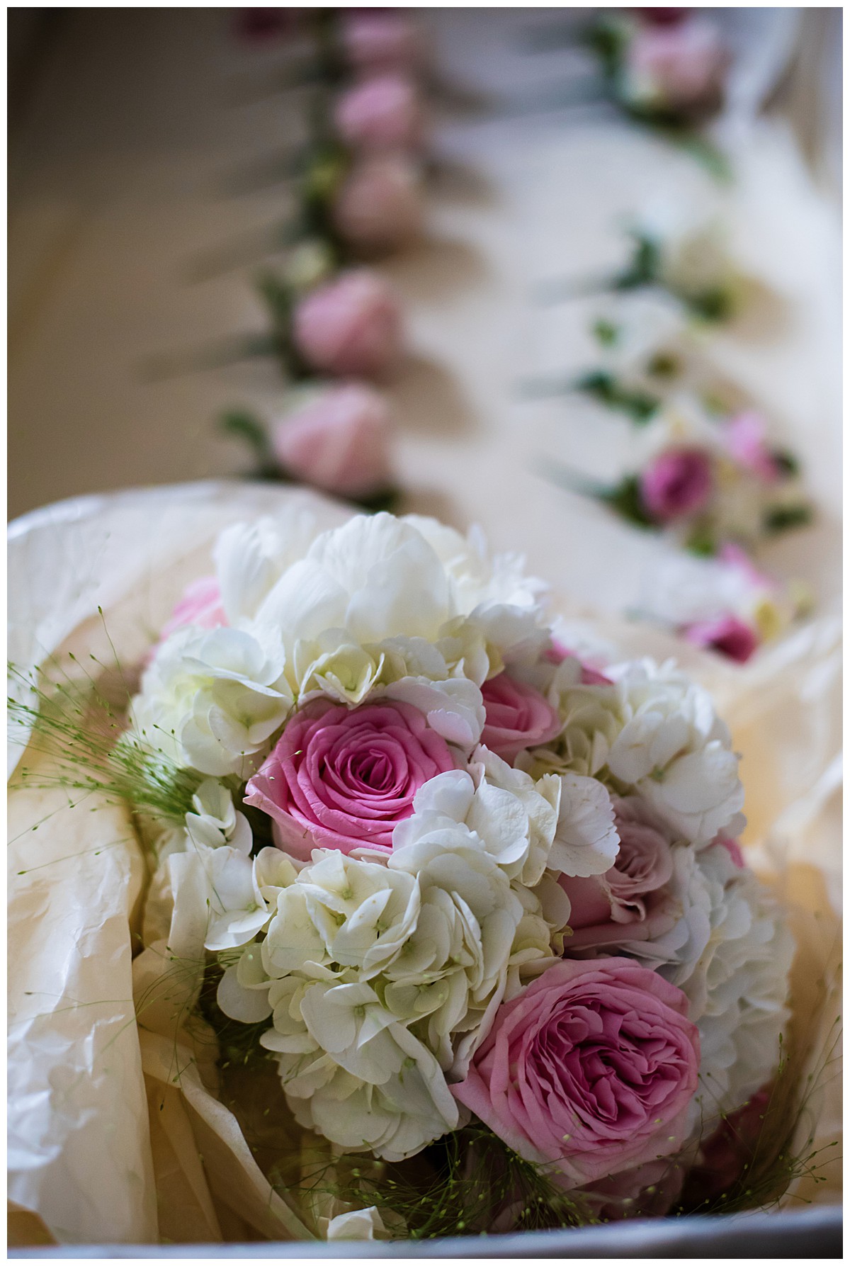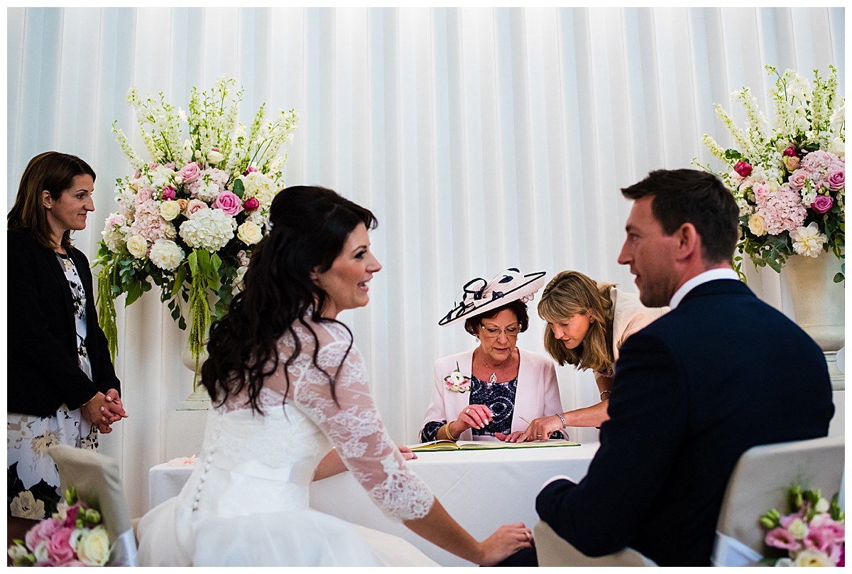 Drawn to the allure of the lovely wedding ceremony and romantic aisle adorned with gorgeous flowers from the wedding they happened to view, Stephanie got in touch with us a few days later and the rest as they say was history. While the other wedding was undoubtedly a seed of inspiration, Stephanie very much put her own stamp on these flowers and opted for a gorgeous mix of ivory, blush and bolder pinks, with elegant tall silver candelabras. Stephanie wanted to create an uplifting and summery effect, and embraced bold contrasts against the white backdrop of the venue wedding suite.