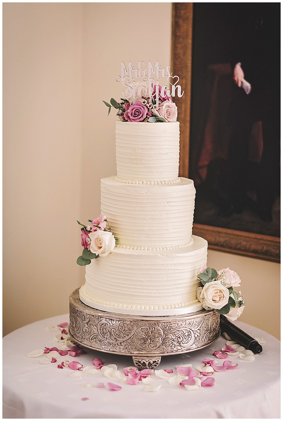 The beautiful cake was provided by Erica at Iced Innovations, and we provided pretty cake corsages and a cake toper of pretty roses, lisianthus and wax flowers.
